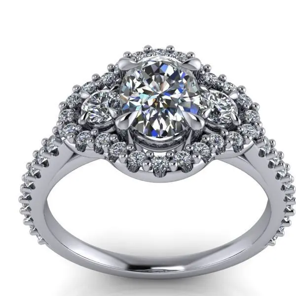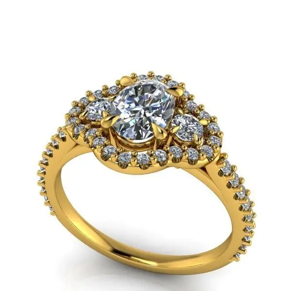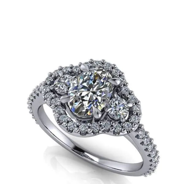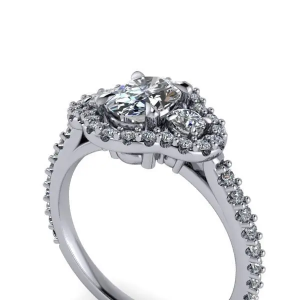 HomeCatalog3 Stone Oval Cut Anniversary Ring Halo Side Accent Stones 3D print model
