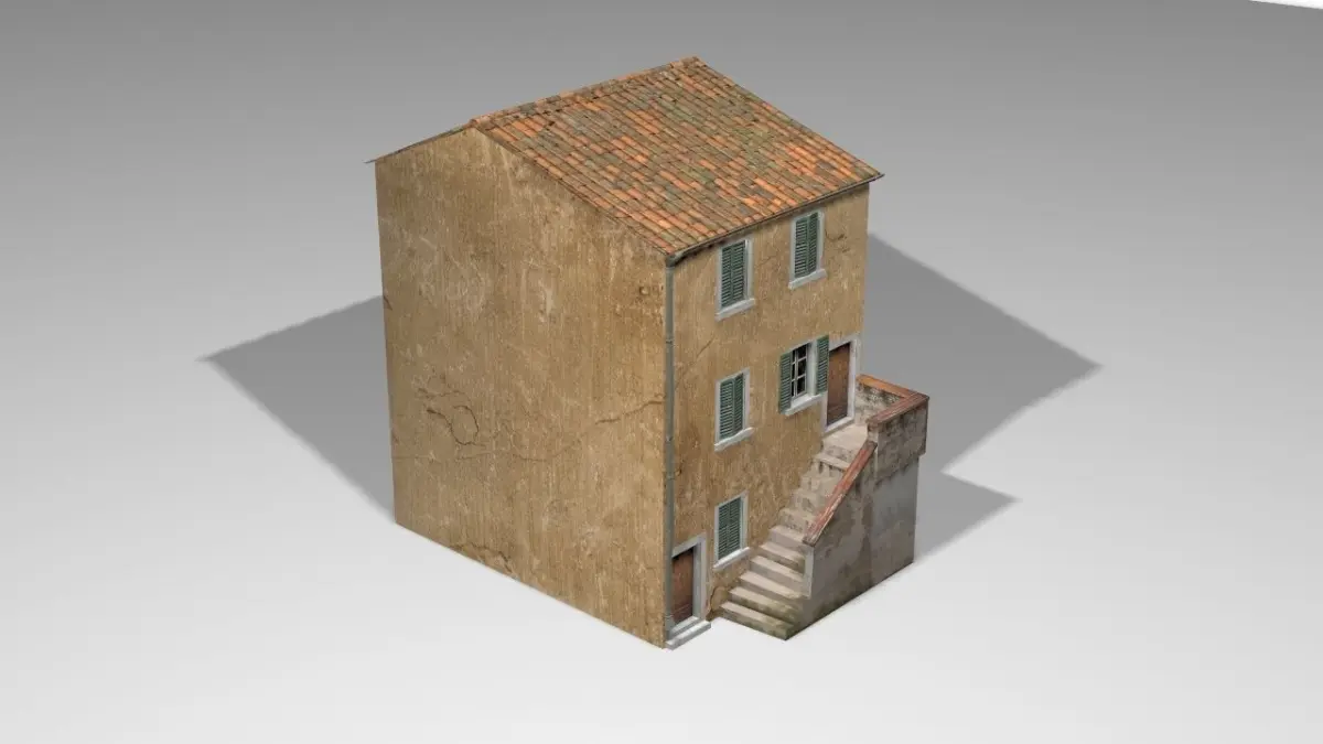 The model consists of 4 parts: House, Roof, Stair, Rain pipe.