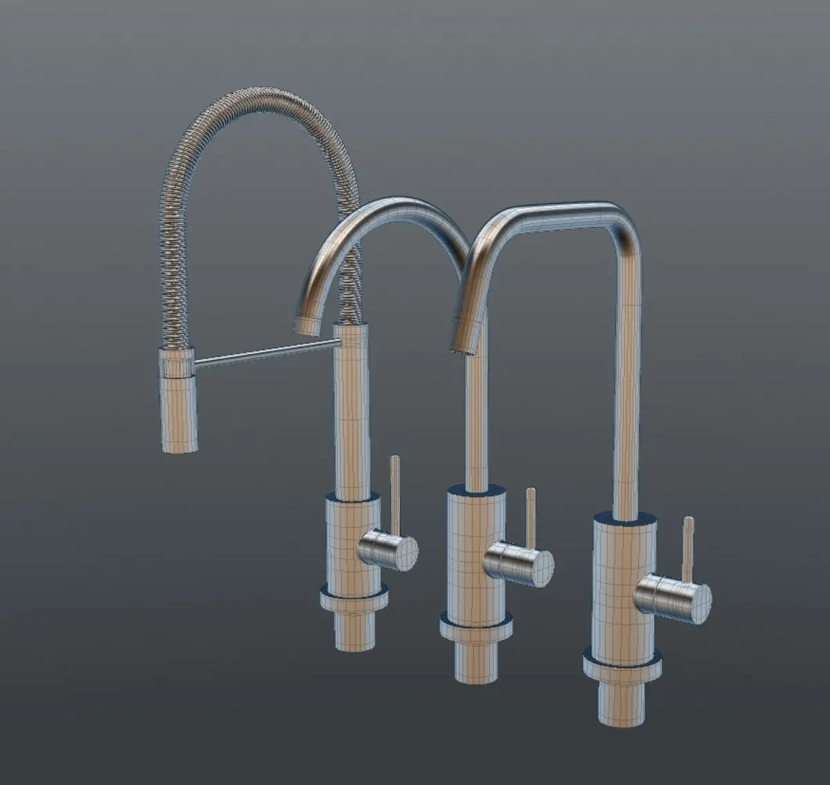3D models of high quality taps. The set includes 3 different taps. The models were made with great attention to detail.