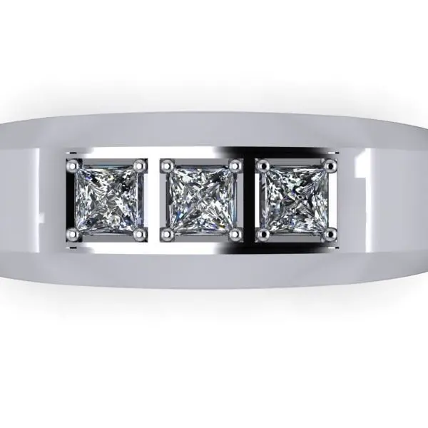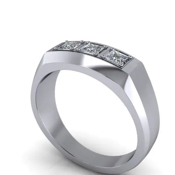 3 Three Stone princess Cut Traditional Mens Wedding band Ring 3D print model