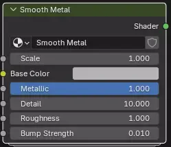Smooth Metal – A clean, reflective surface perfect for product renders, automotive models, or industrial assets. Finely tuned roughness and reflectivity values ensure crisp highlights and authentic metallic depth.