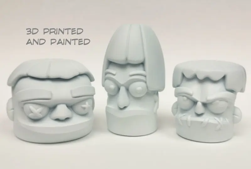 The size of the small head is : 5.1 cm (width) X 5.2 cm (height) X 6 cm (depth)The size of the long head is : 4.6 cm (width) X 7.8 cm (height) X 5.4 cm (depth)The size of the large head is : 6.4 cm (width) X 5.2 cm (height) X 7.1 cm (depth)but of course you can easily change the dimensions.