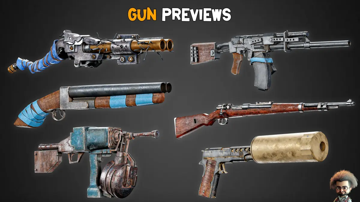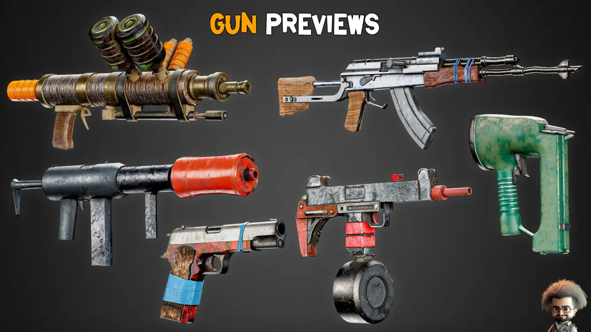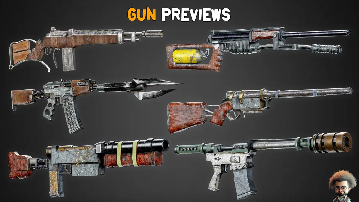 30 HQ Post-Apocalyptic Guns.16 Bit.Includes 4K Textures.OBJ , FBX , BLEND ,PDF (preview).Unwrapped.Blend Tris Version.LowPoly (Game-Ready).I hope you enjoy this beautiful and practical product.