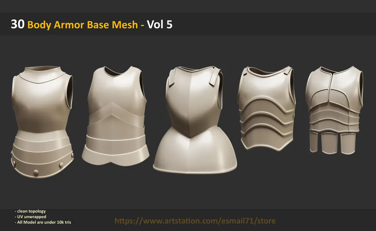 45 Warrior Helmet Base Mesh - Vol 1 : https://www.artstation.com/a/1545475645 Column Base Mesh - Vol 2 : https://www.artstation.com/a/1593428230 Armor Base Mesh - Vol 3 : https://www.artstation.com/a/1641959030 Vambrace Base Mesh - Vol 4 : https://www.artstation.com/a/16830382