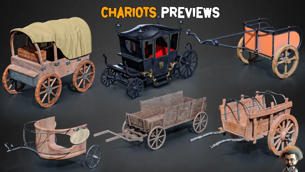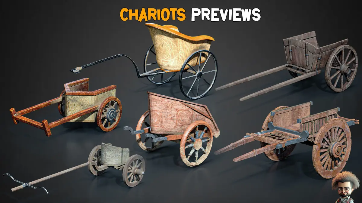 30 Chariots Models4K textures16 BitOBJ , FBX ,PDF (preview)Unwrapped3D Models OBJ-FBX-Blend.