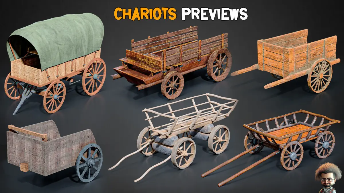 -- Here is a set of 30 Chariots Models, Having game assets can increase your speed in creating a game environment, that's why we have prepared a unique torch pack for you, which is ready to be used in your games and animation projects.
