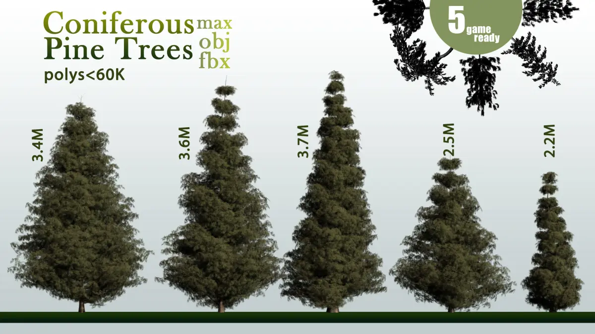 This product contains 30 coniferous pine trees.The trees are very low poly and suitable for making games and animations.And because of having the high quality of these trees, you can use them in architectural projects.All models are Unwrapped.You can use the low poly tree in any software that works with 3d model.