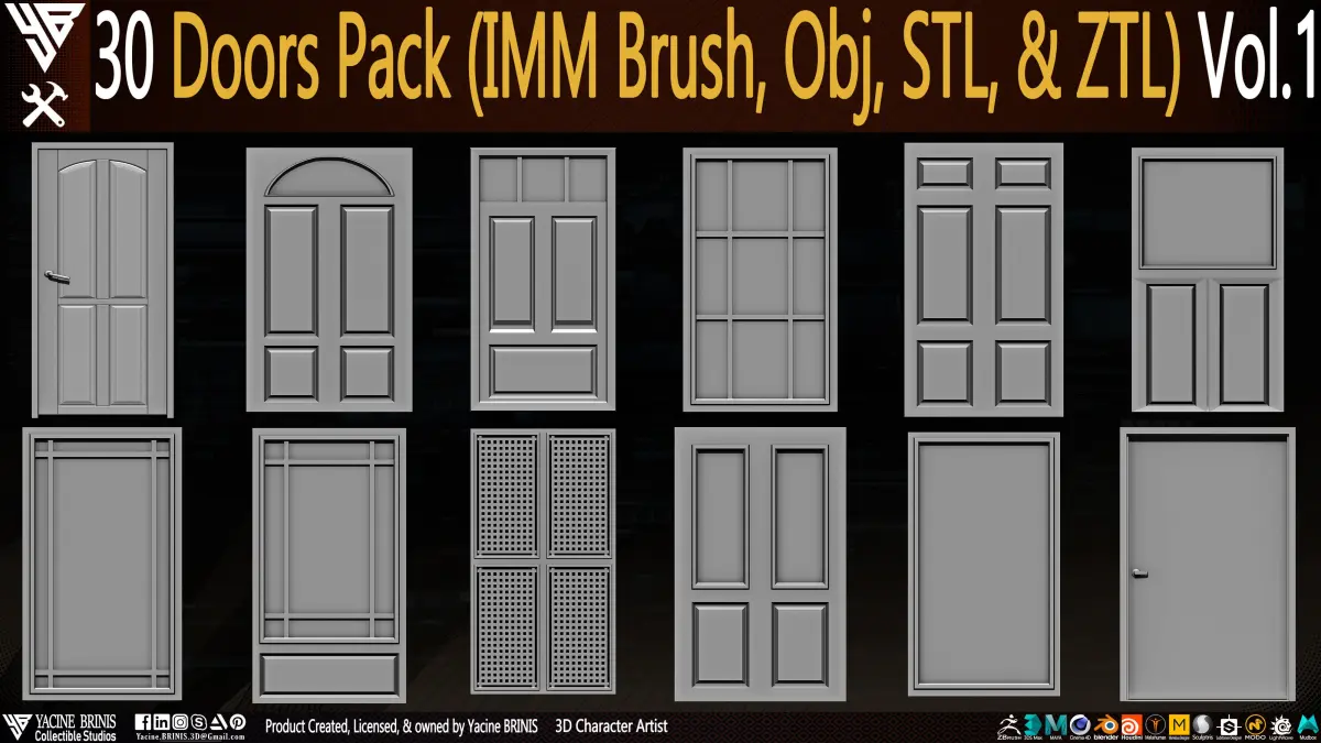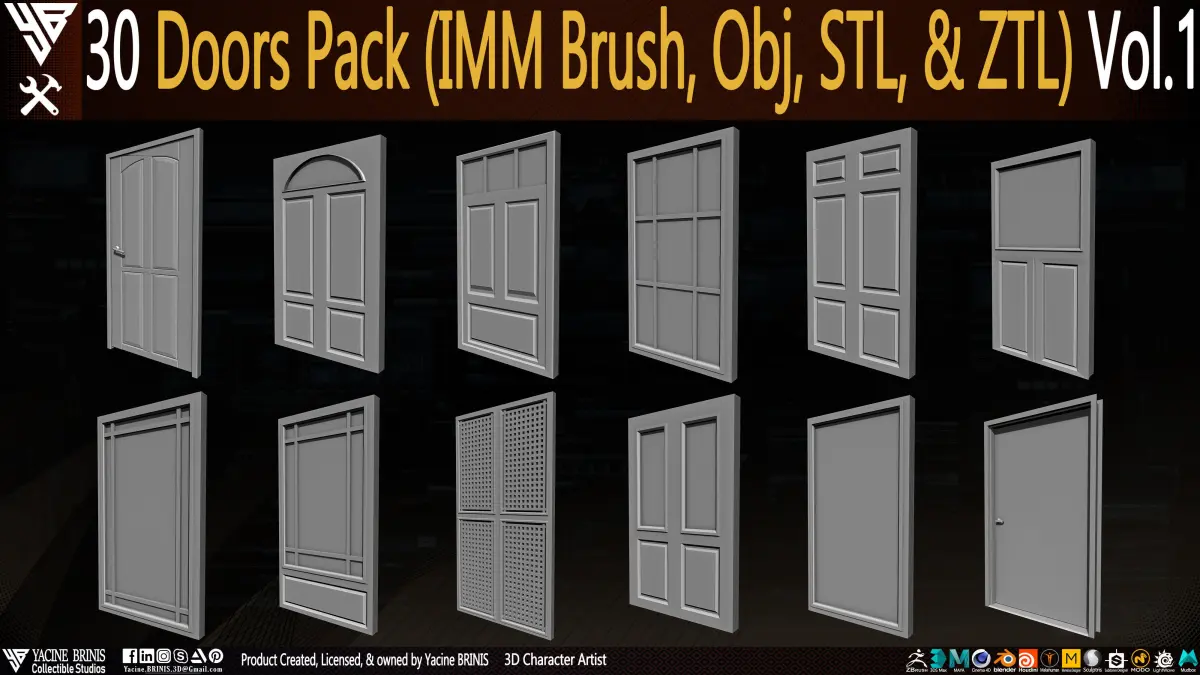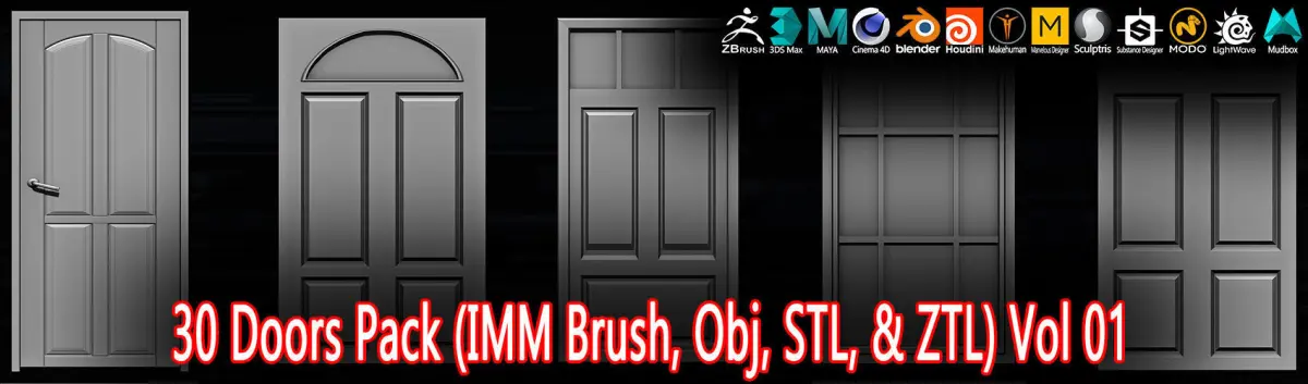 30 Doors Pack (IMM Brush, Obj, STL, & ZTL) Vol 01