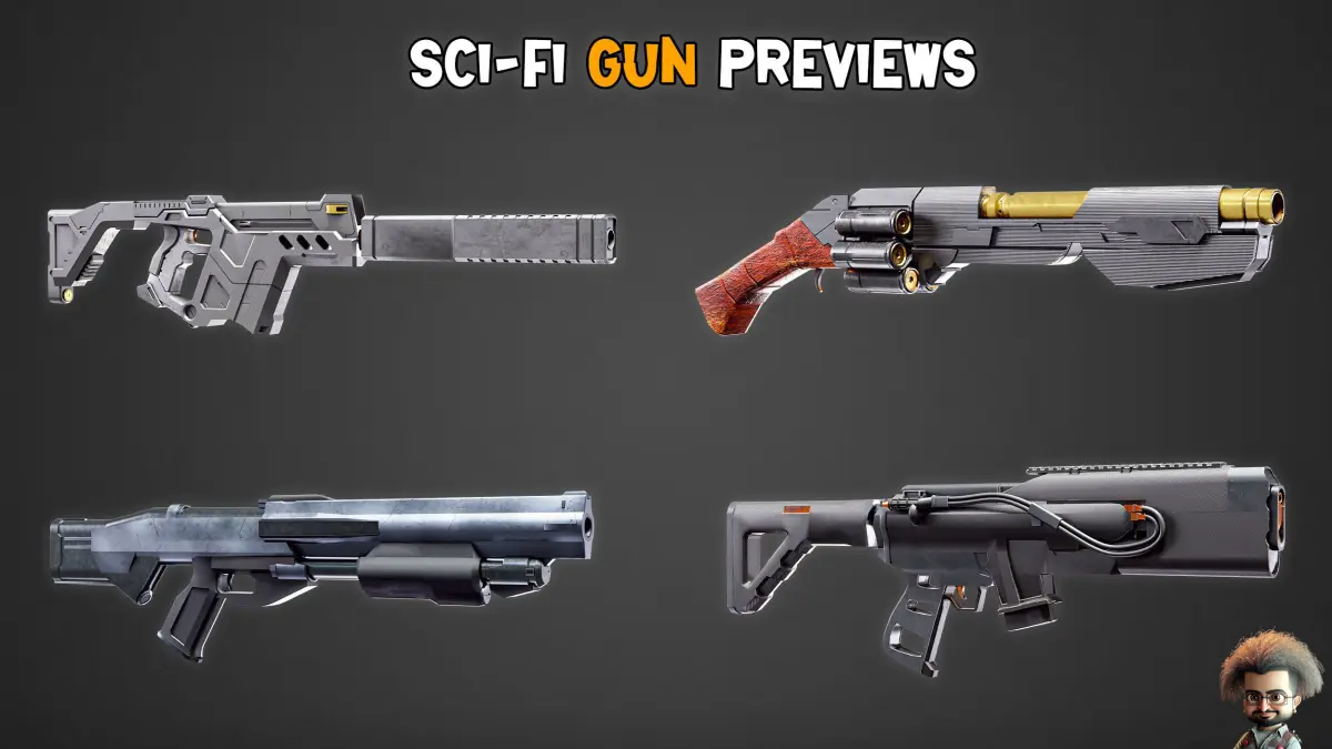 30 HQ Sci-Fi Guns16 BitIncludes 4K TexturesOBJ , FBX , BLEND ,PDF (preview)UnwrappedLowPoly (Game-Ready)I hope you enjoy this beautiful and practical product.
