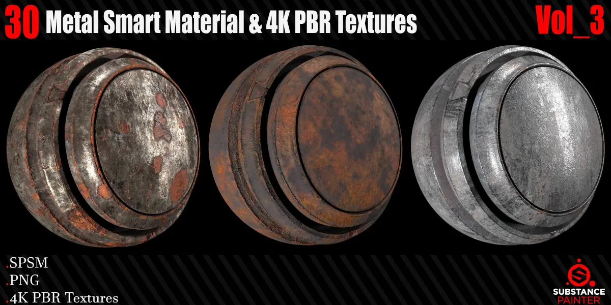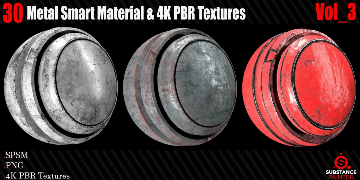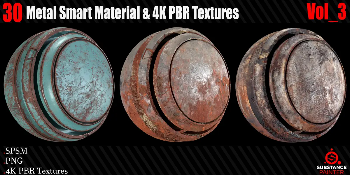 30 High Quality and high detail Procedural Metal Smart Materials. This product includes 30 Metal Smart Material for S*ubstance Painter* and 4K PBR texture. You can use the PBR Textures for any program that works with PBR workflow!