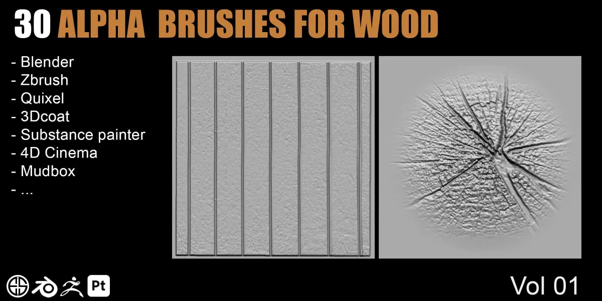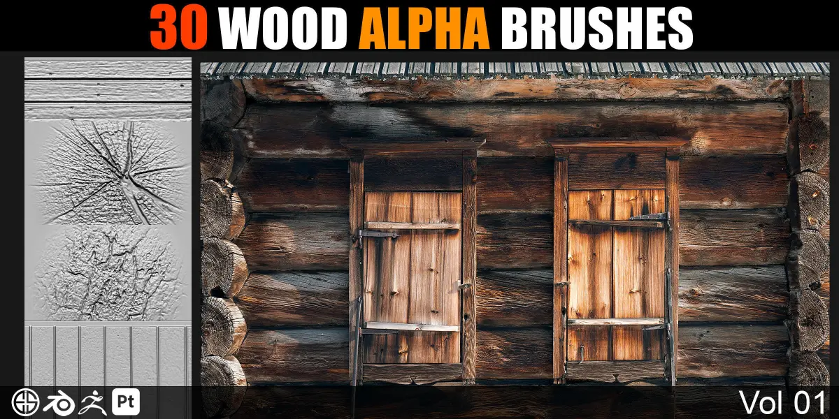 - The desired product includes 30 completely real alpha brushes for models with wood structure.