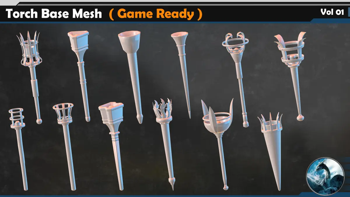 30 Torch Base Mesh + 10 wall base + 10 Torch and wall baseOBJFBXAll models have both UV channels 1 and 2,3,4All Model are under 10k tris