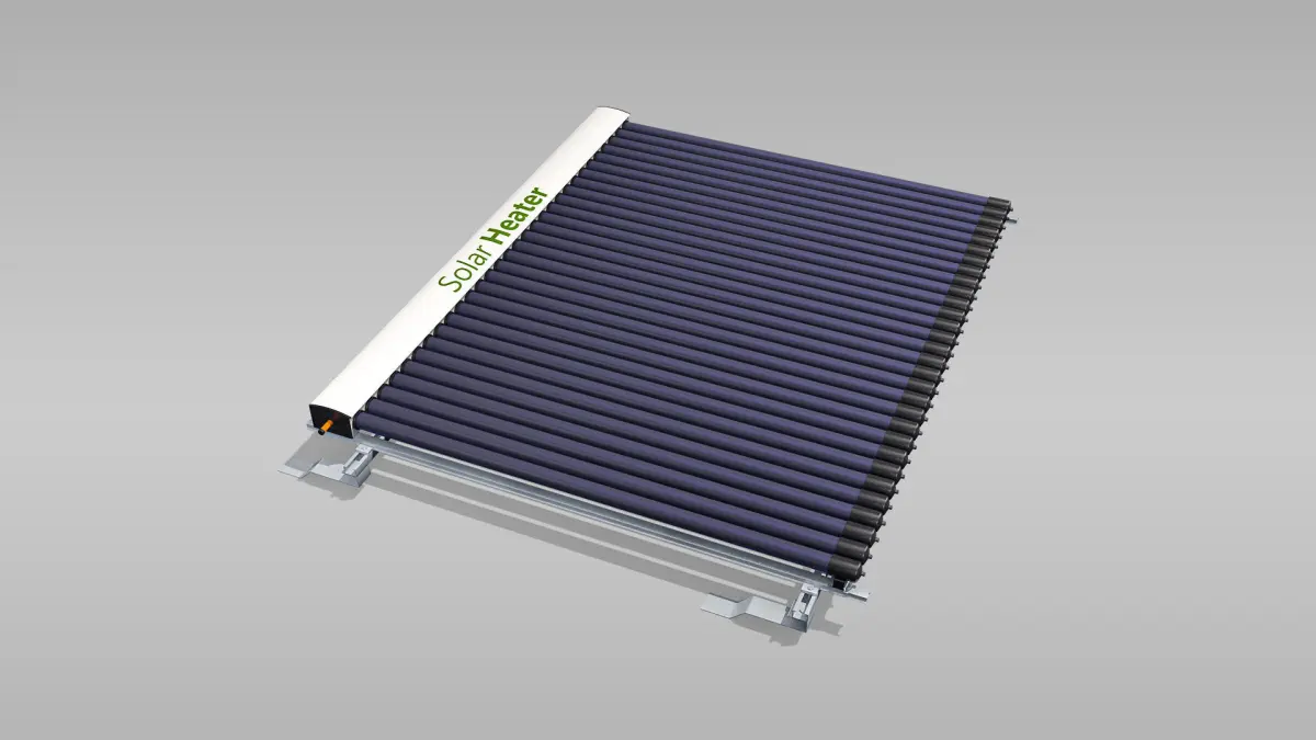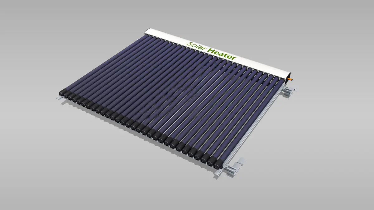 Detailed 3D model of a 30 tube solar water heater, modeled and rendered in Cinema 4D. The model was created using approximate real world dimensions.