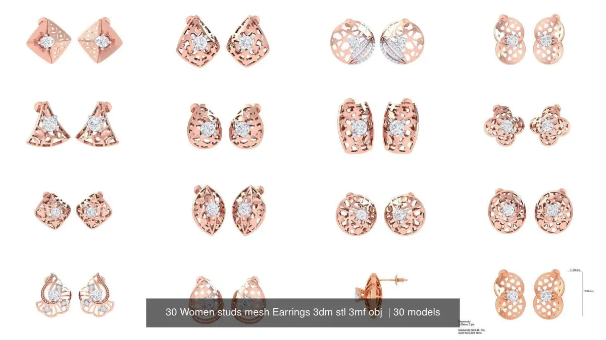 - 30 Women studs mesh Earrings 3dm stl 3mf obj glb gltf mtl 3D print model