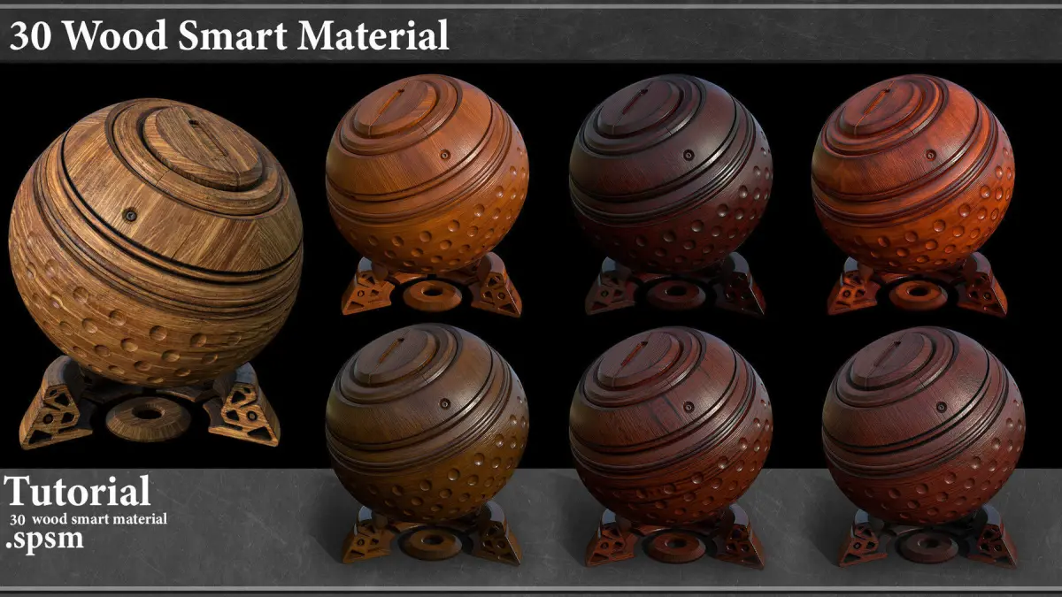 Here is a set of 30 High Quality wood Smart Materials (.spsm)