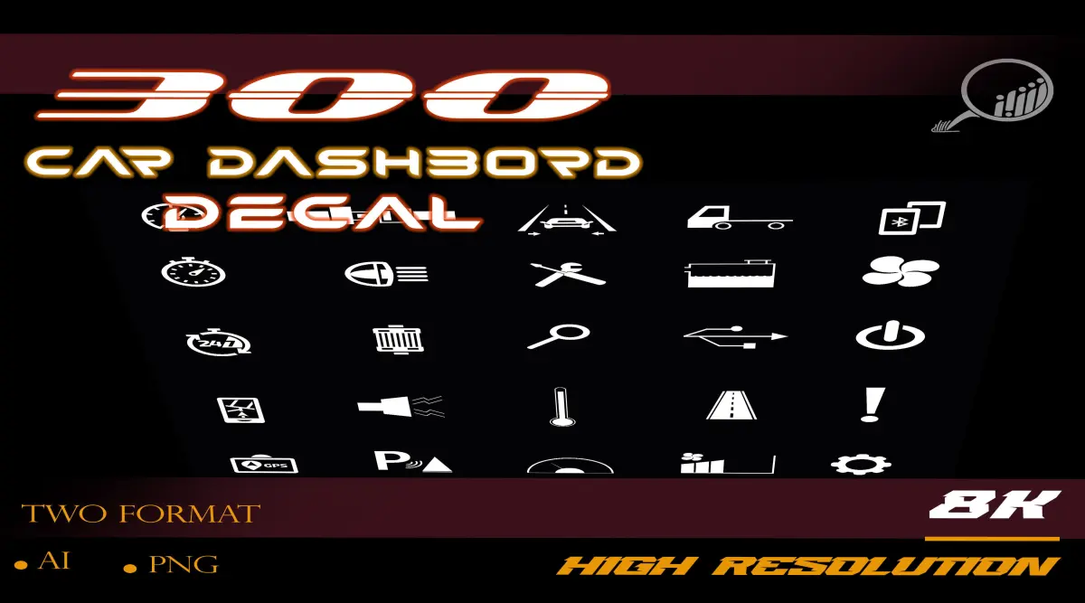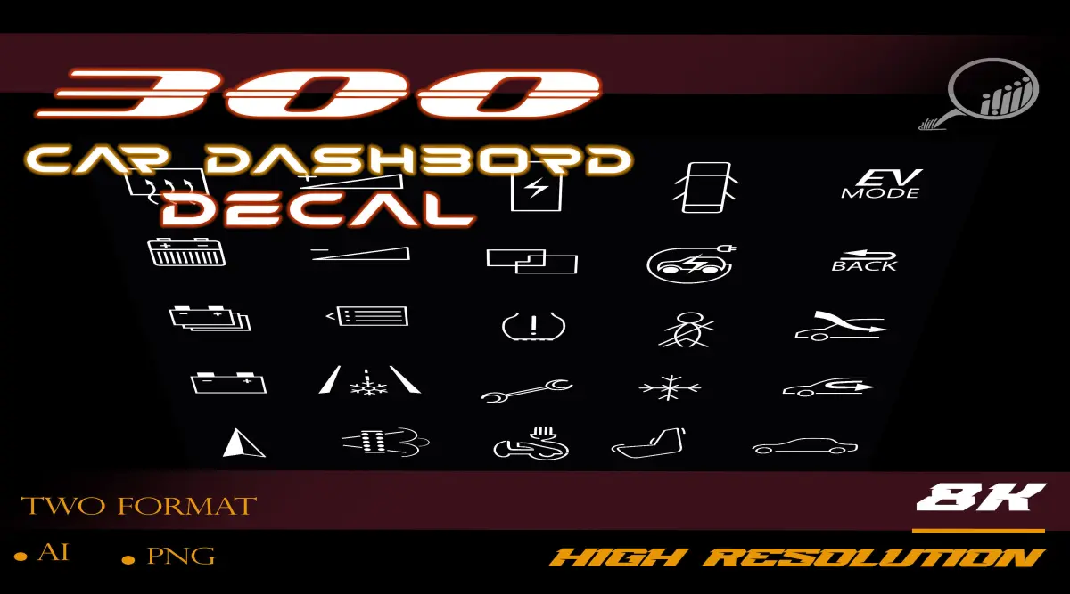 The set of 300 vector car dashboard stickers includes all the icons related to car dashboards (cars, trucks and motorcycles), including car dashboard indicators and stock warning lights, control images, batteries, etc., which are displayed in Illustrator software as The vector is designed and available in two formats: png and ai.
