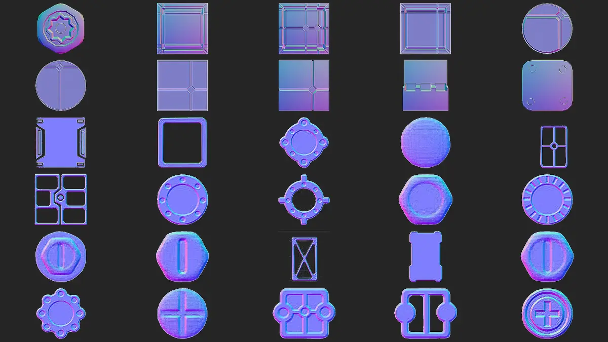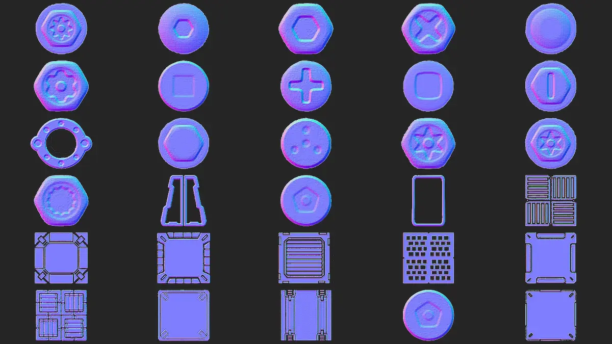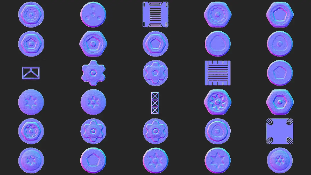 Our collection of 300 Substance Painter Stamps & Decals comes with 2K resolution normal maps, ensuring exceptional quality for all your projects. Whether you're a Substance Painter or Blender user, these decals are compatible and ready to be utilized in various 3D design software.