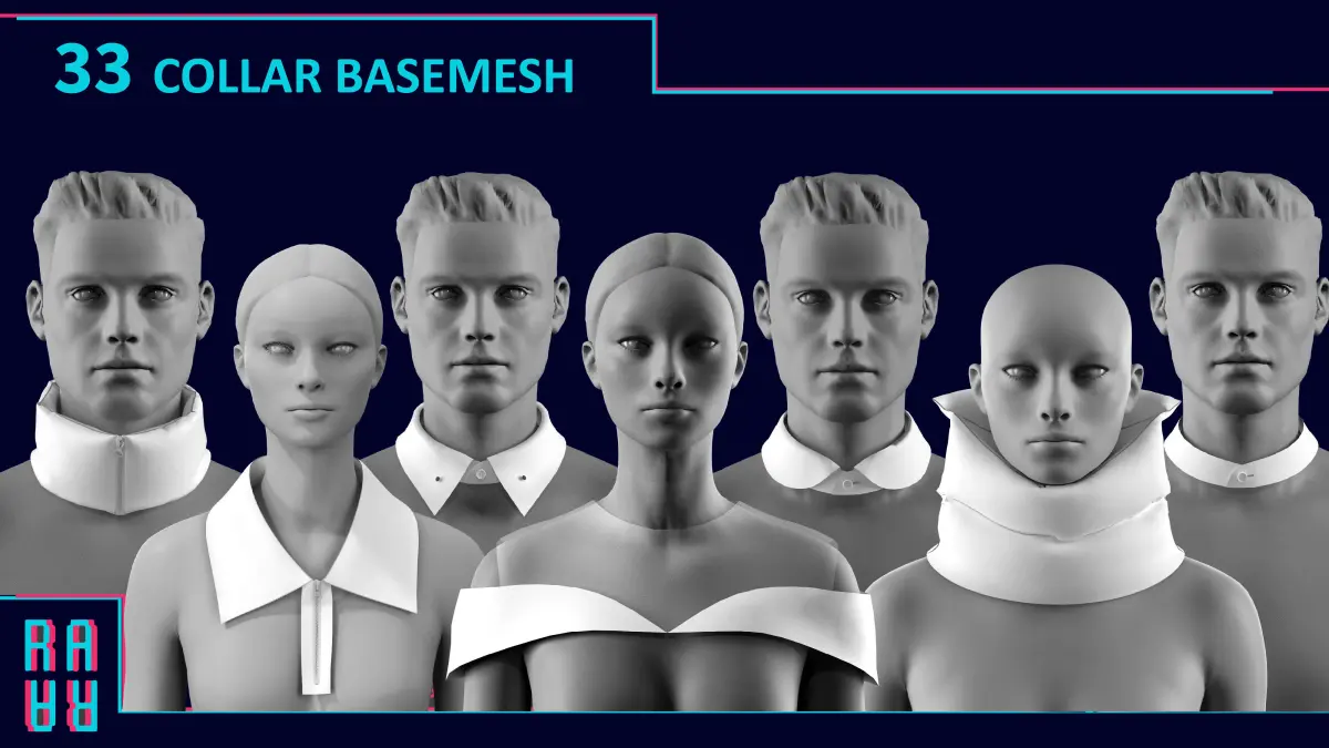 Our digital pack of 33 COLLARS is a must-have for game designers and digital artists. Designed with Marvelous Designer and CLO3D software, these 3D models are offered in zprj, obj, and fbx formats, making them incredibly versatile for a range of digital projects. Upgrade your game's wardrobe today with this must-have accessory pack!
