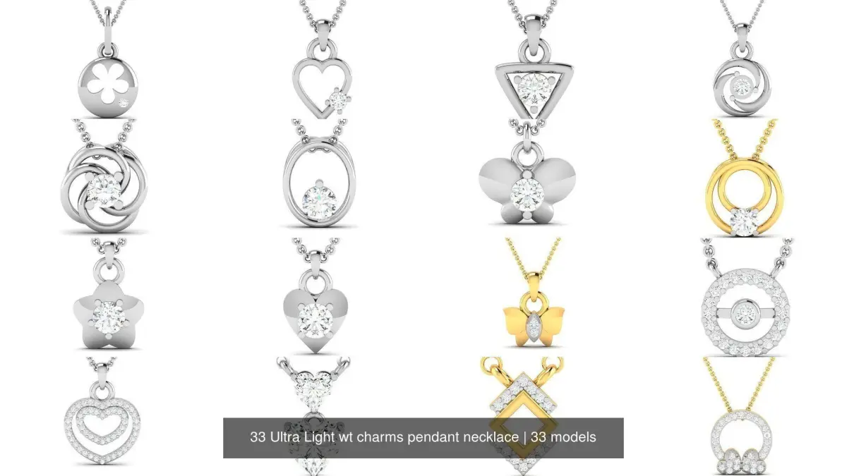 33 Ultra Light wt charms pendant necklace 3D Model Pack