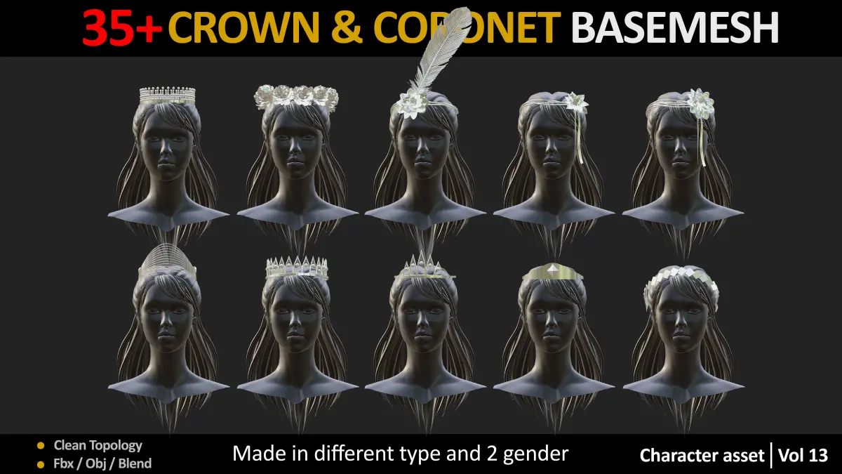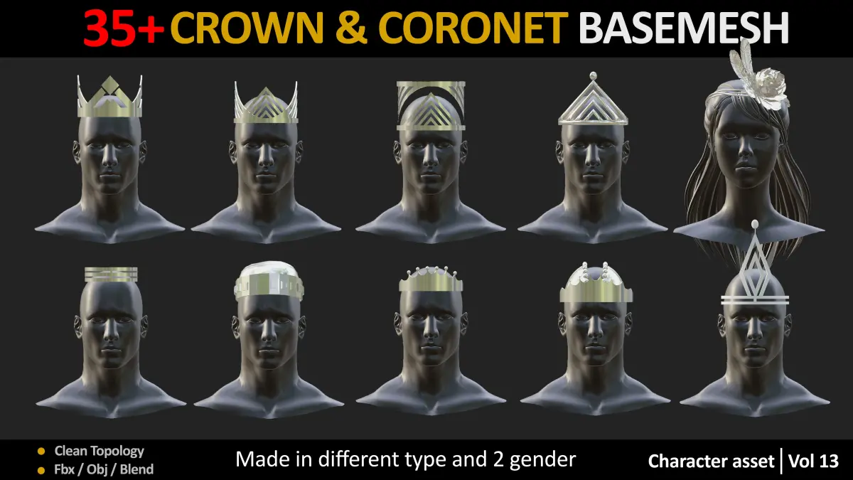 35 Crown Basemesh made in different type • Classic• Wedding• Fantasy• King• Sci-fi