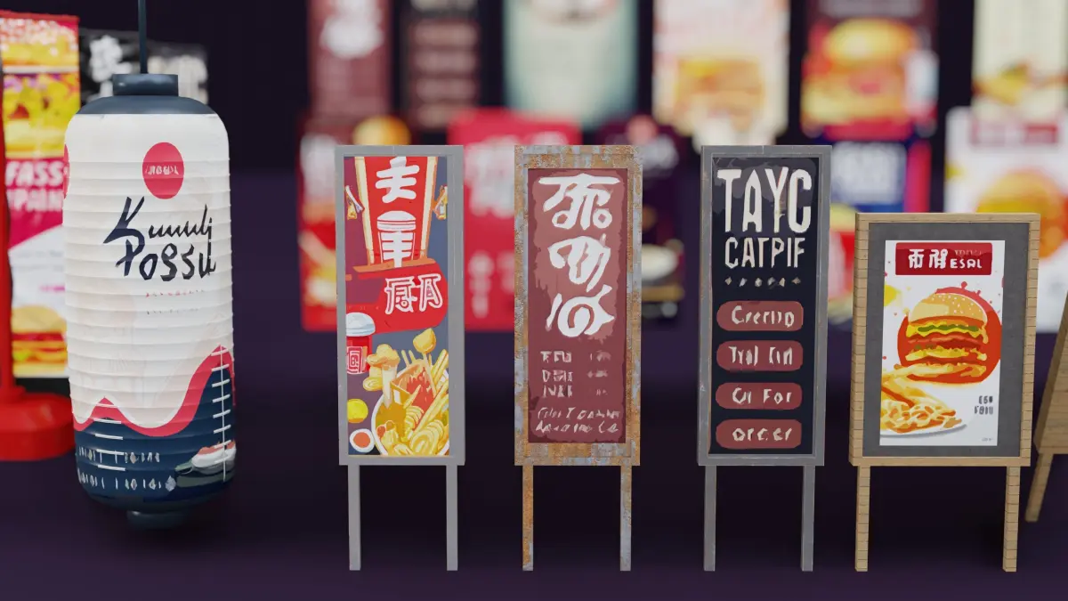 There are 35 different Japanese style Restaurant and Cafe signs and posters.