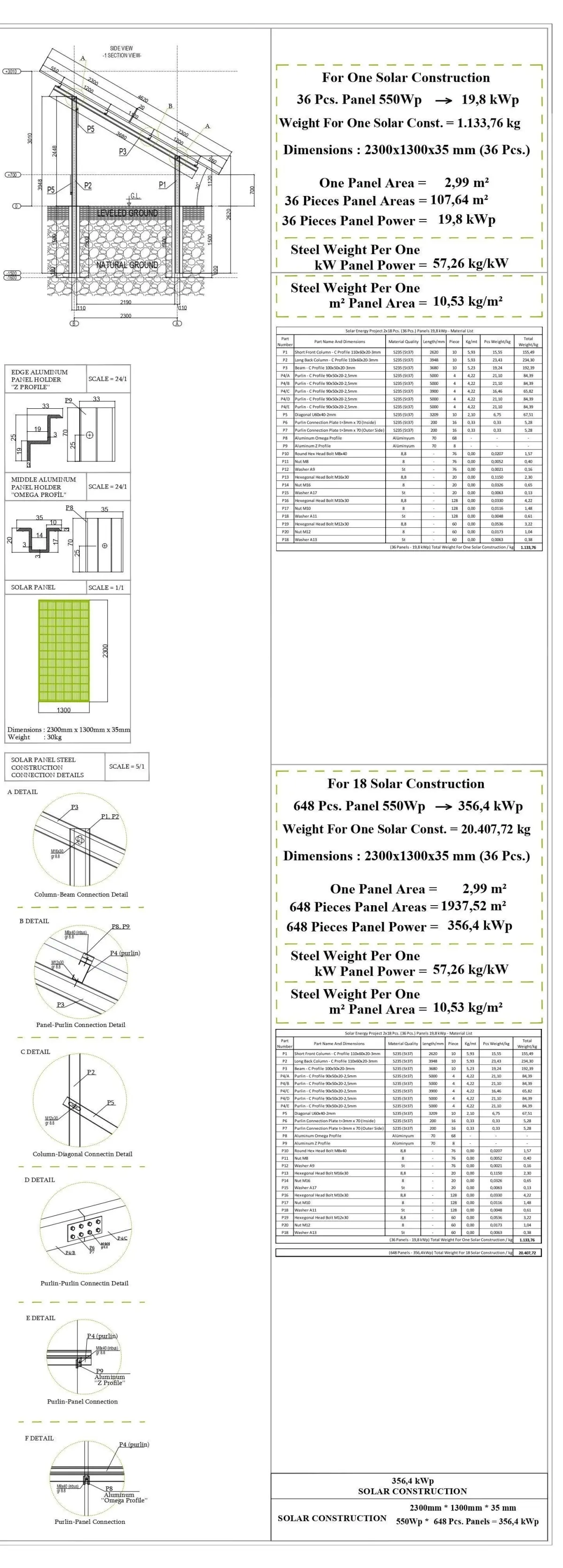 1 solar panel steel construction produces 19,8 kWp power in 1 hour
