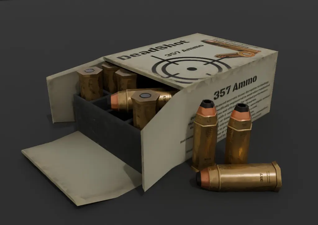 This is a game-optimized 3D model of a .357 ammo box, ideal for FPS, survival, military, or any project requiring a realistic and efficient ammunition asset.