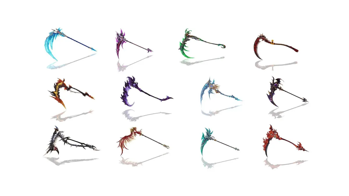 A pack of scythes/sickles in a lot of different fantasy styles.Each weapons comes with 3 textures.