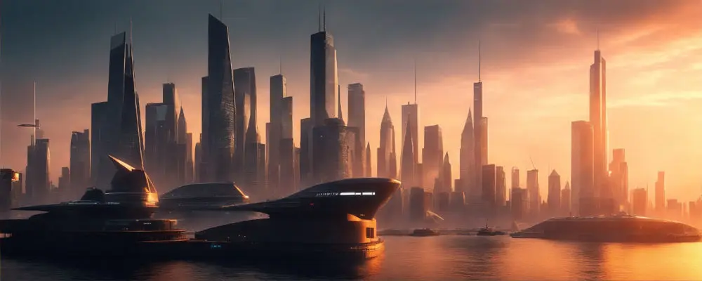 Collection of 36 futuristic city digital backdrop images, suitable for over-rendering, photo compositing, splash screens or other digital editing. This is not a collection of 3D scenes.