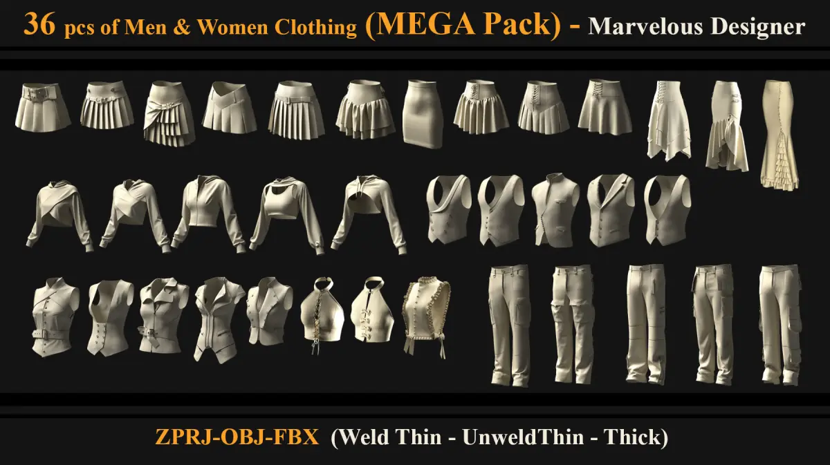 his MEGA Pack contain 36 pcs of clothes (Men & Women)