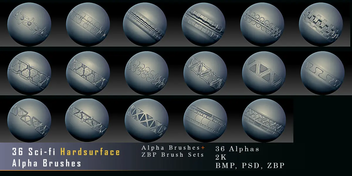 Buy 36 Sci-Fi Hardsurface Trim Brushes 3D model