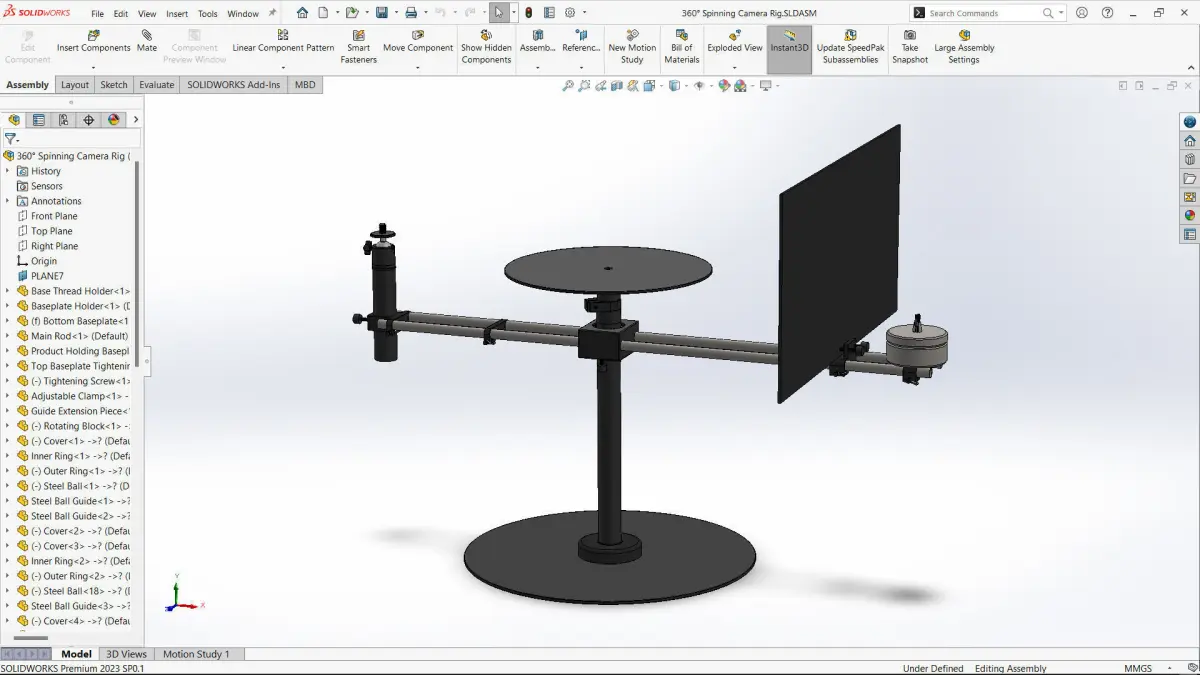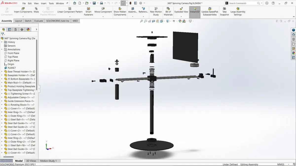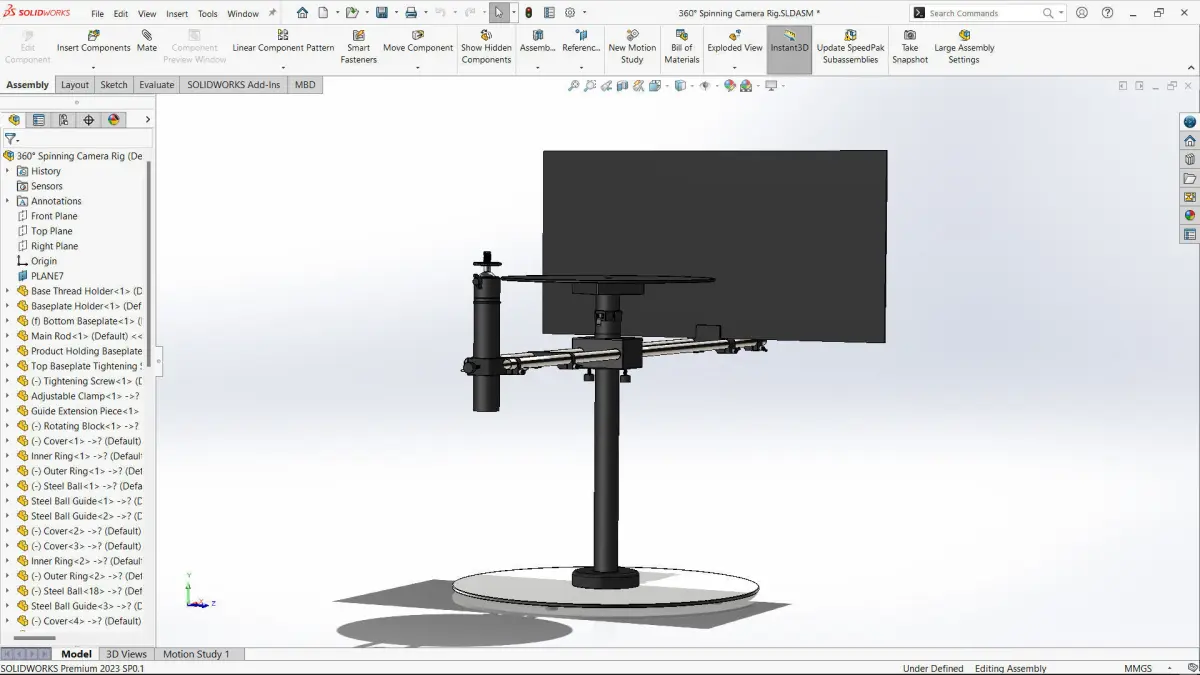 This 360° Spinning Camera Rig is a highly detailed, real-world scale 3D model designed in SolidWorks. Every component in the model accurately represents the real-world assembly, ensuring precise functionality and seamless integration. Whether you're working on product visualization, prototyping, or technical projects, this model is perfect for your needs.