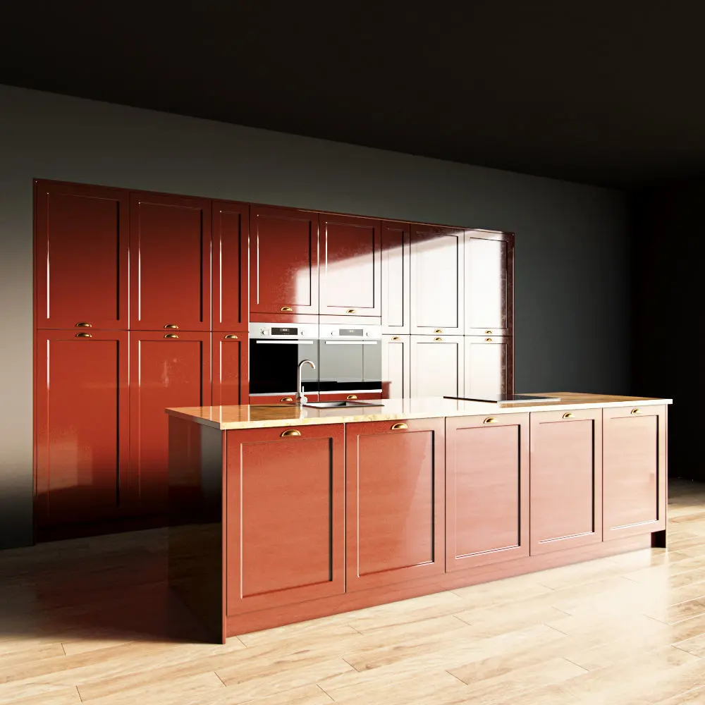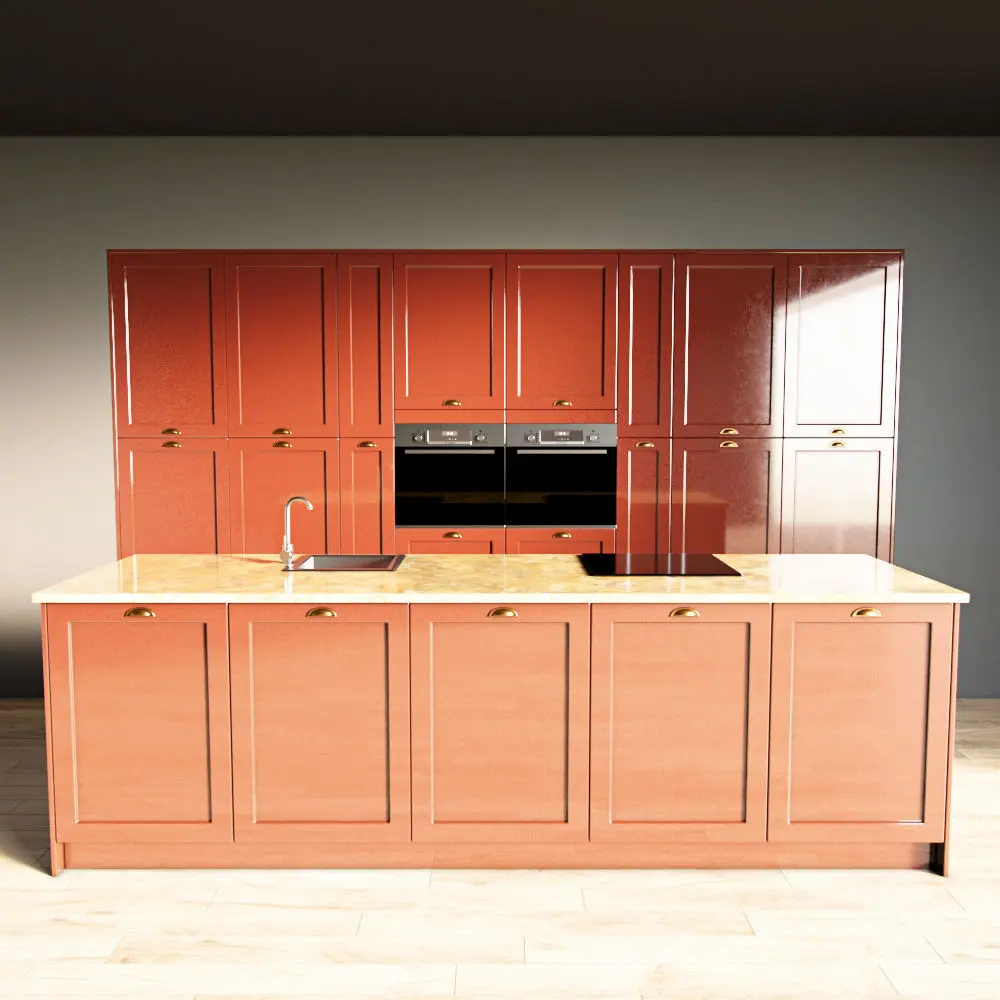 Only the kitchen and the island are present in the scene. The floor, walls, ceiling are yours.