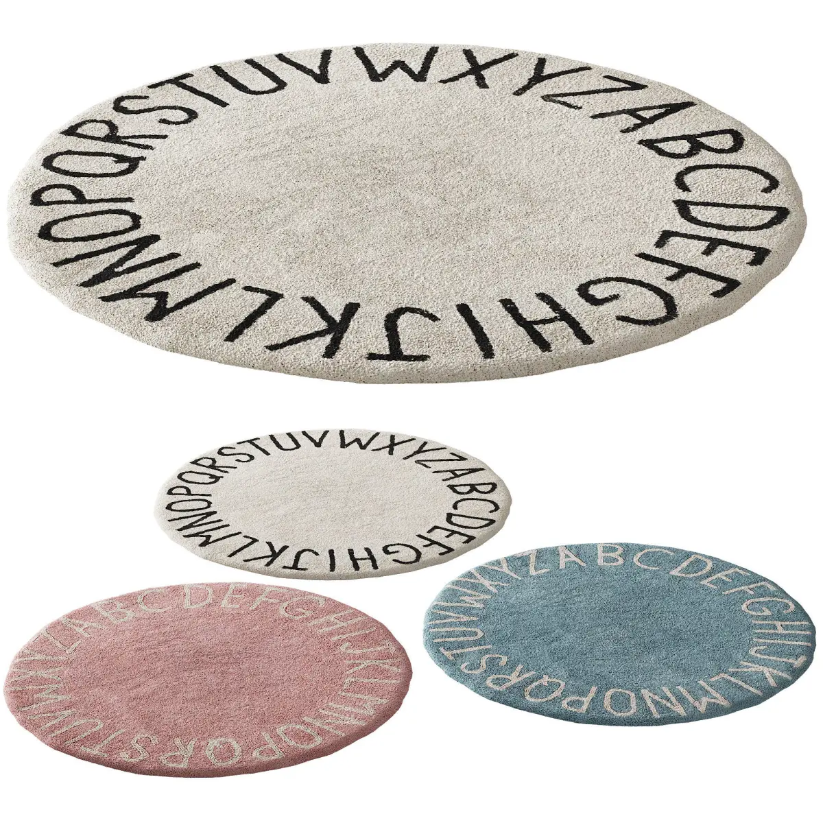 3d model: carpet / rug for nursery / for children washable rug ABC natural black by Lorena Canals carpet kit for kids / nursery / child room