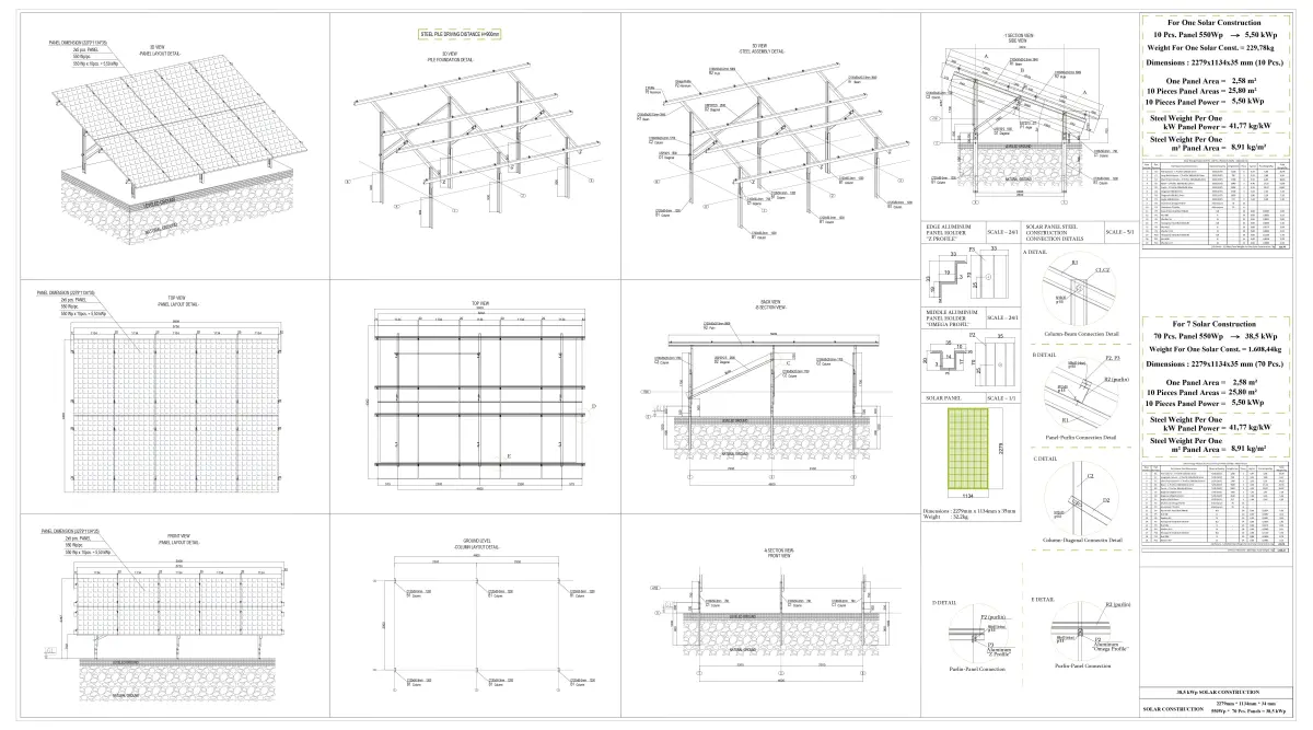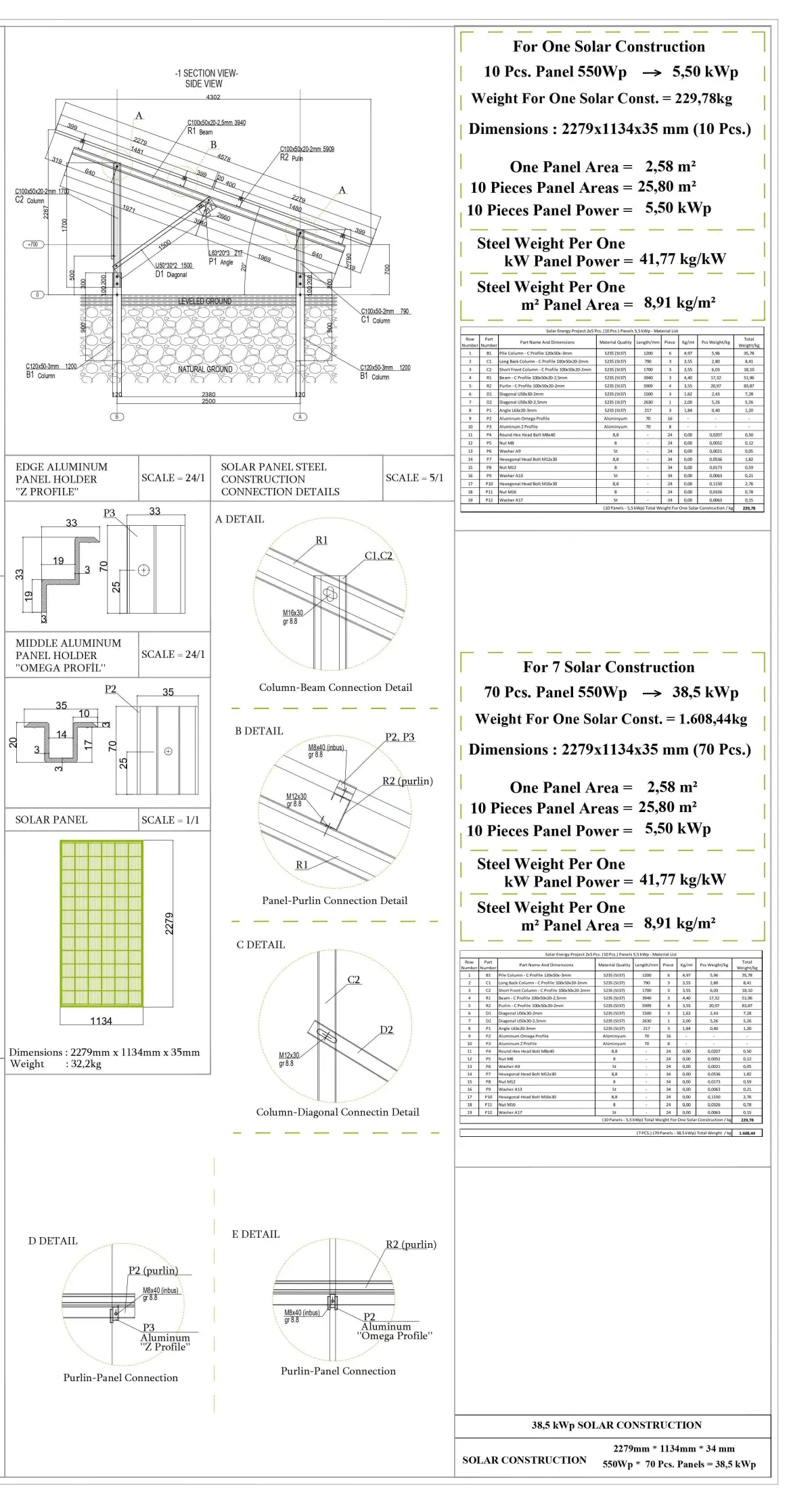1 solar panel steel construction produces 5,5 kWp power in 1 hour