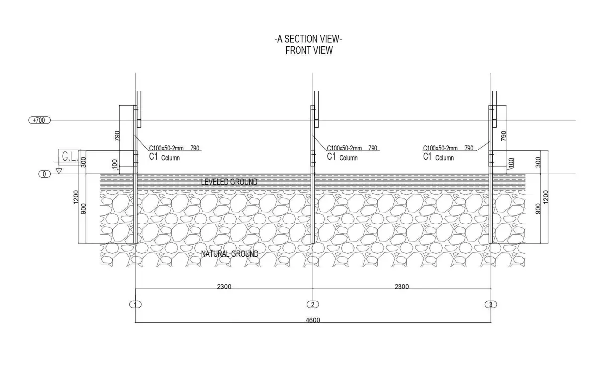 Distance of Columns Below Ground 900 mm.