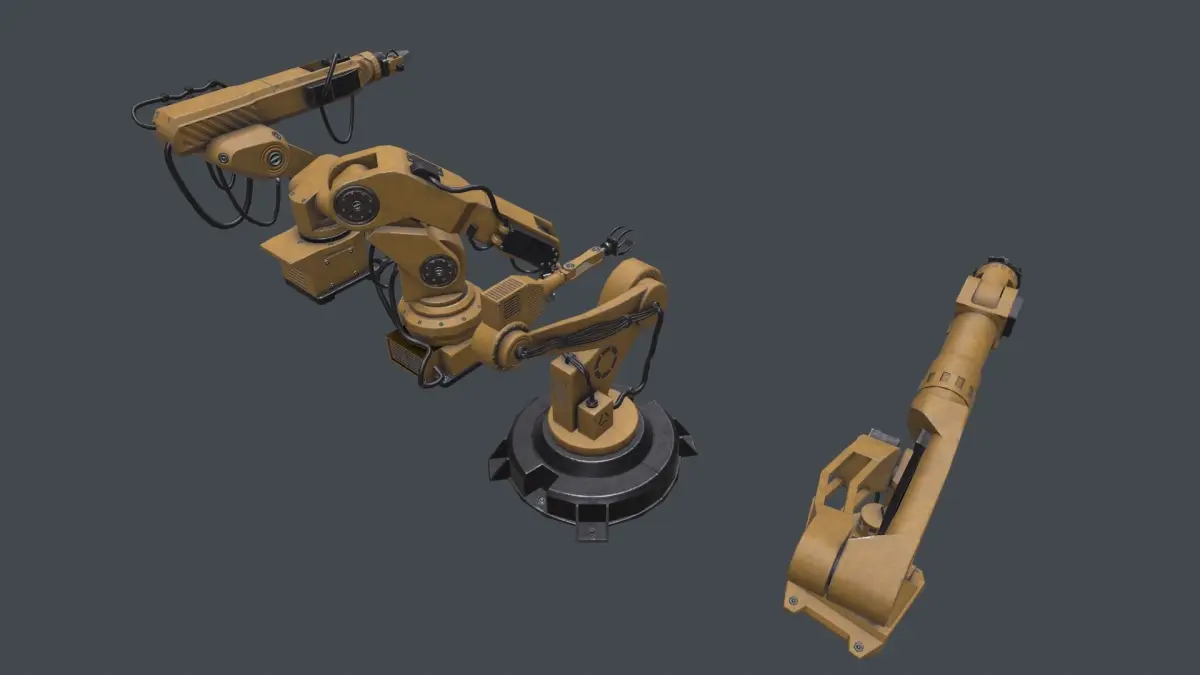 Package of 3D models of industrial robots from 4 pieces.Models are all low-poly. Suitable for game and rendering. There is no rig and animations.You can make an animation yourself, all moving parts are separated, the mesh is not cast.
