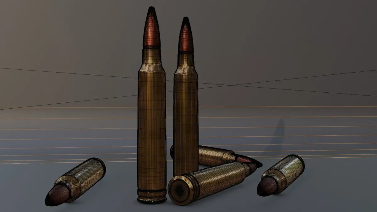 The 3D 7mm bullet model is designed to let your imagination run wild. It's a single piece, and the texture is procedurally created. If you want to add texture, you'll need to work with UVs.
