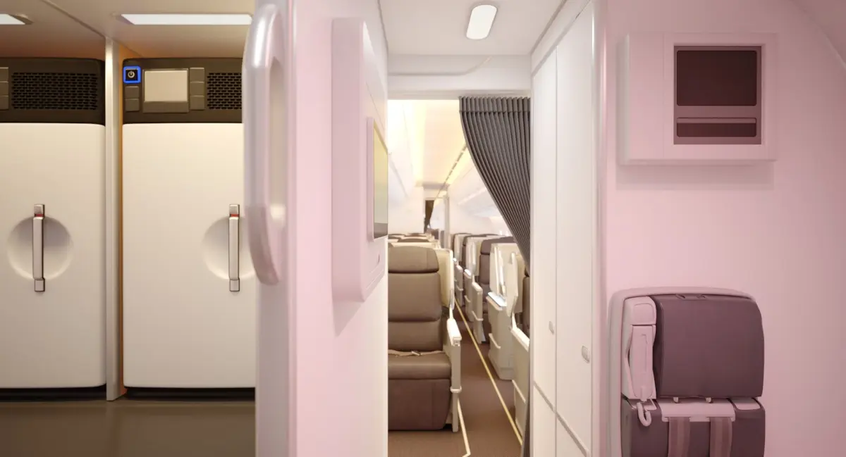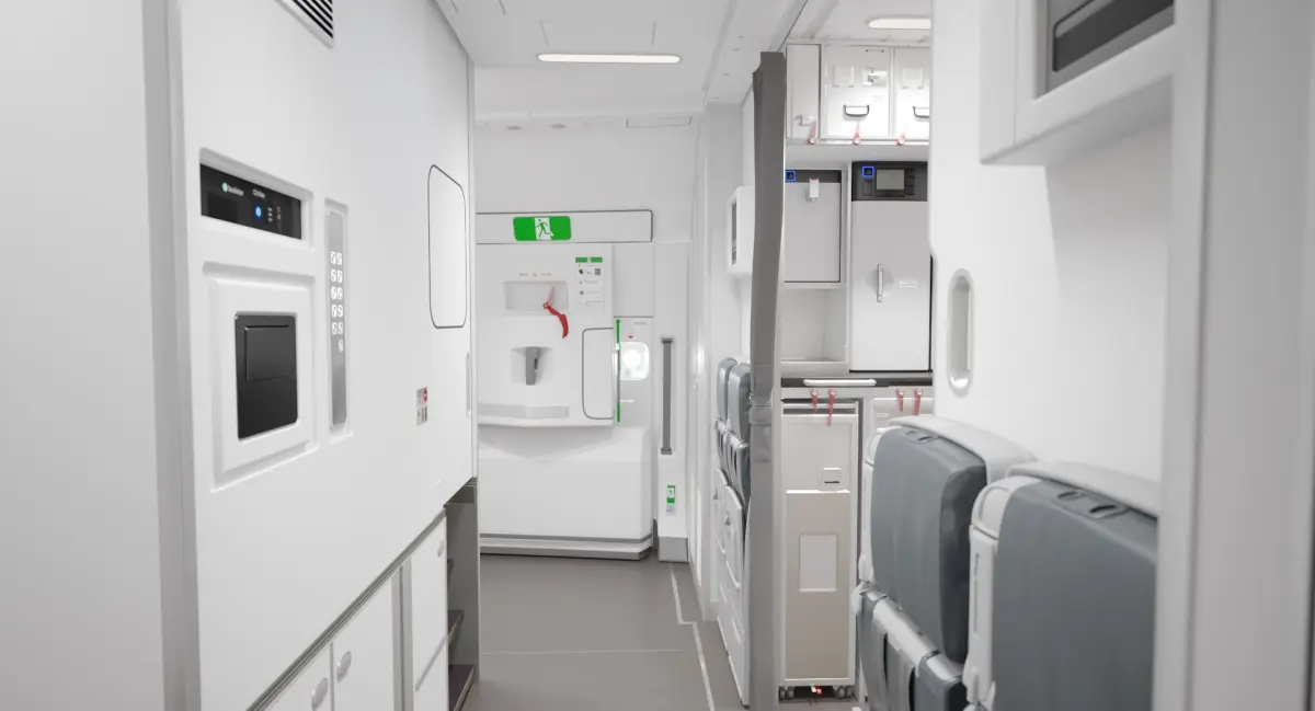 Very High detailed 3D model of a A350 aircraft interior cabin with super high detailed Galleys (AFT, MID and FWD)