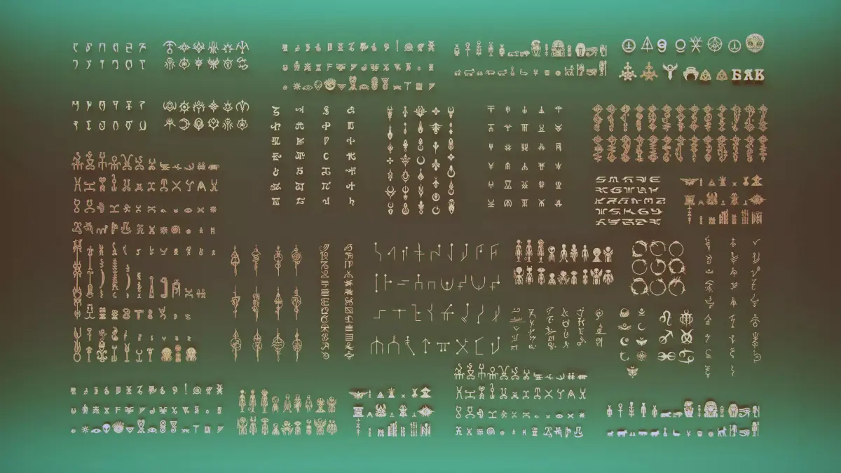 alien alphabet, sci-fi glyphs, futuristic design, extraterrestrial symbols, tribal symbols, space hieroglyphics, alien runes, mystical language, alien characters, alien-themed assets, concept art pack, world-building, game design, RPG assets, digital storytelling, graphic design, creative assets, cinematic design, futuristic hieroglyphics, extraterrestrial typography, bundle , collection, kitbash