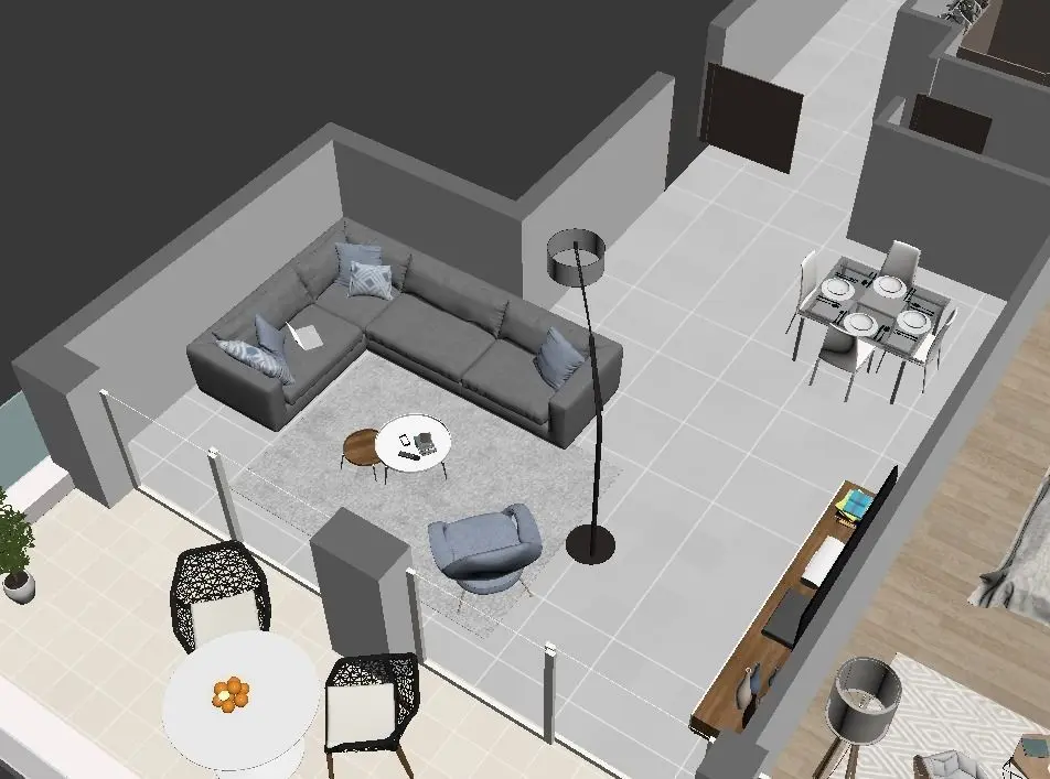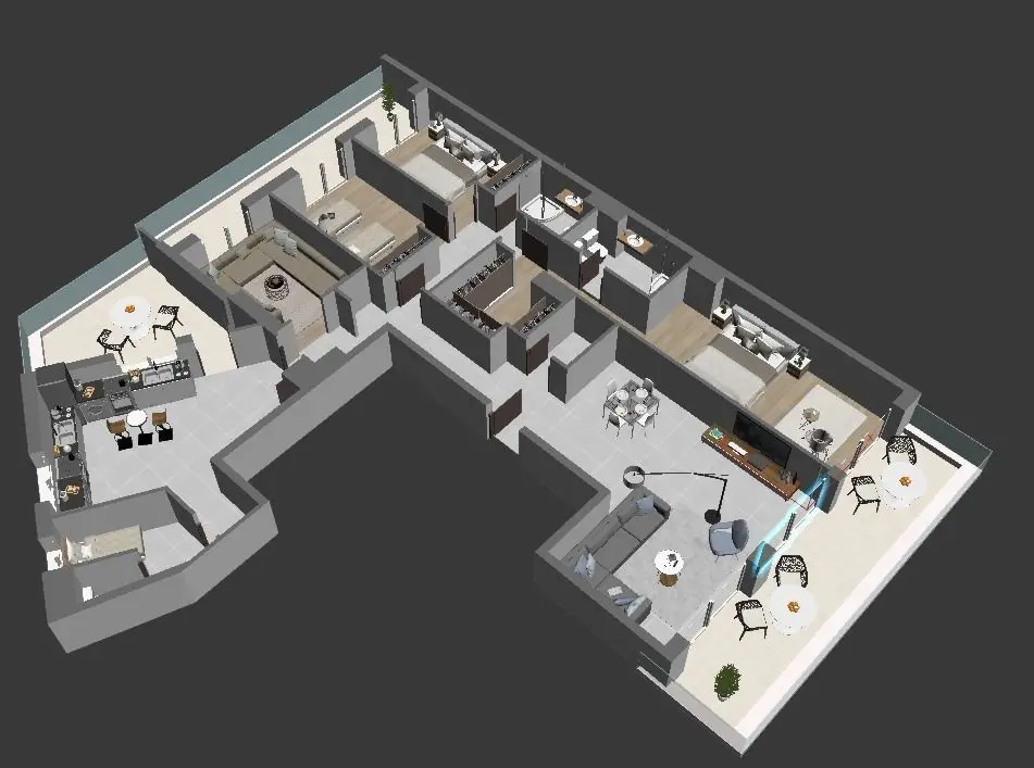 A complete and detailled floorplan of a modern appartment with all fourniture and textures visible in provided images. objects was selected carefully to match design of each other with carful attention to colors and textures harmony.Regardless of your style, interior design should have a personality. Take a look at the brilliantly designed spaces here and the qualities that make them so excellent. Maybe they'll inspire a great design of your own.