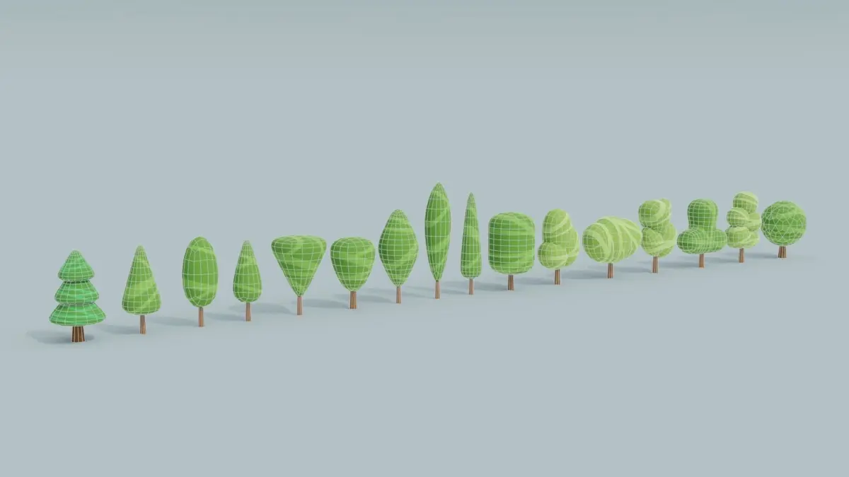 This is a set of 16 low-poly stylized TREES for use in your projects! It comes UV unwrapped with a single diffuse map (in .blend file used to generate a heightmap as well).