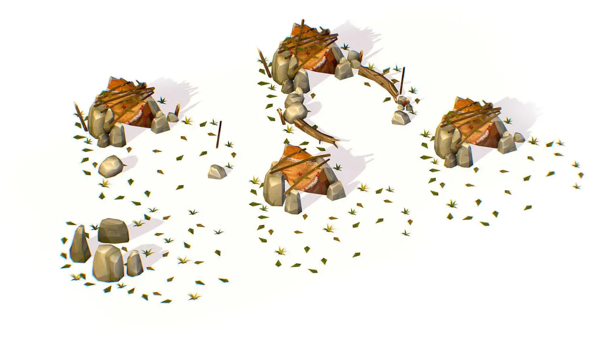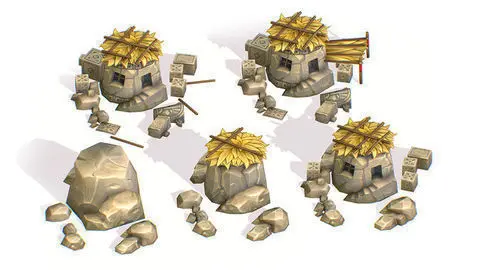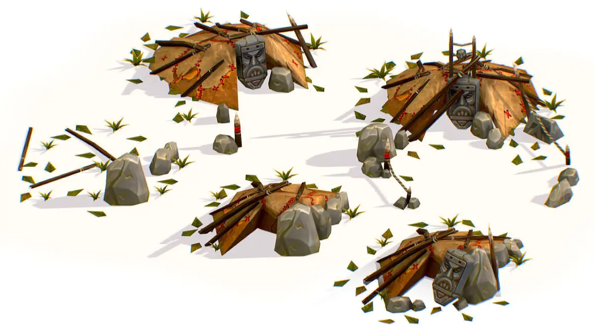 * Series 3d Assets of buildings and structures, prehistoric setting, a lot of symbols, totems.