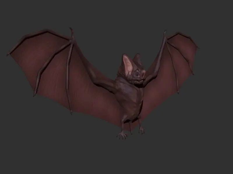 This is a model of a bat made with ZBrush and rigged in Blender with a cartoon style.