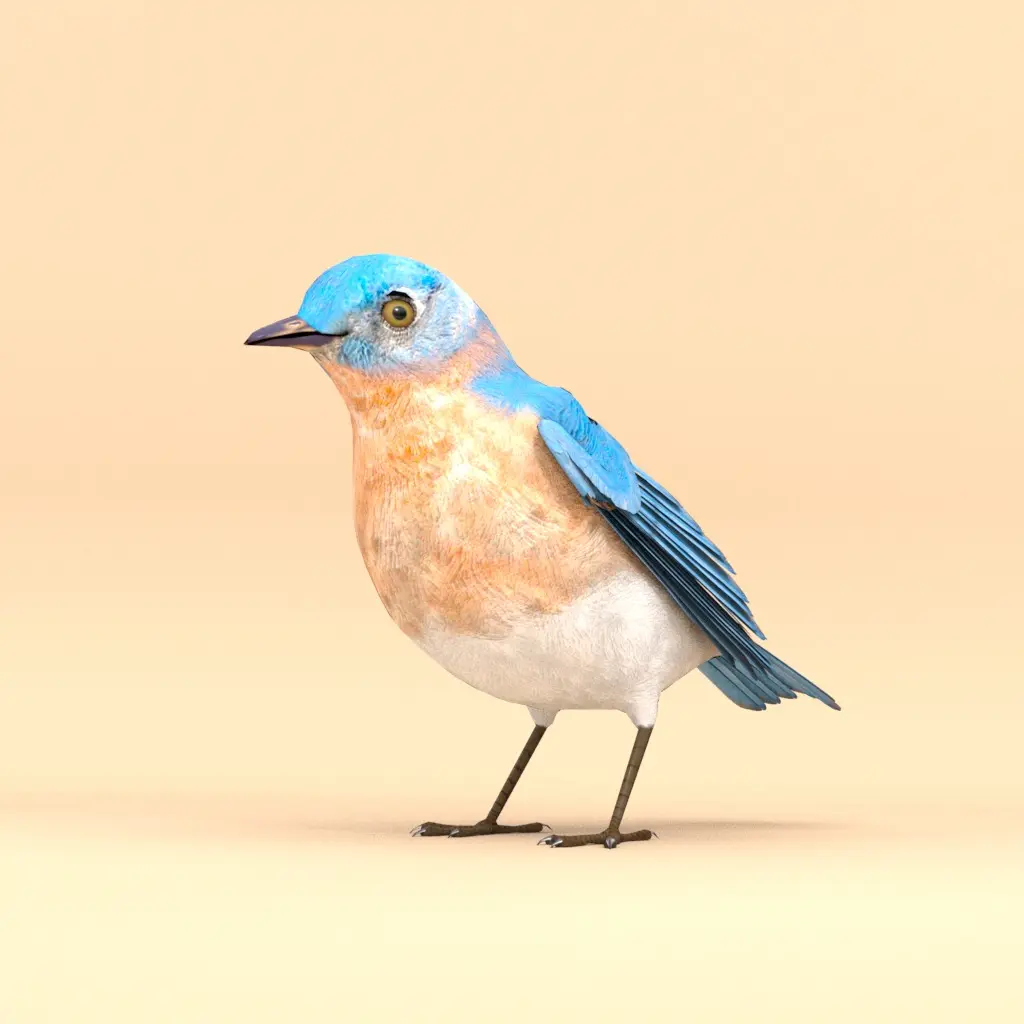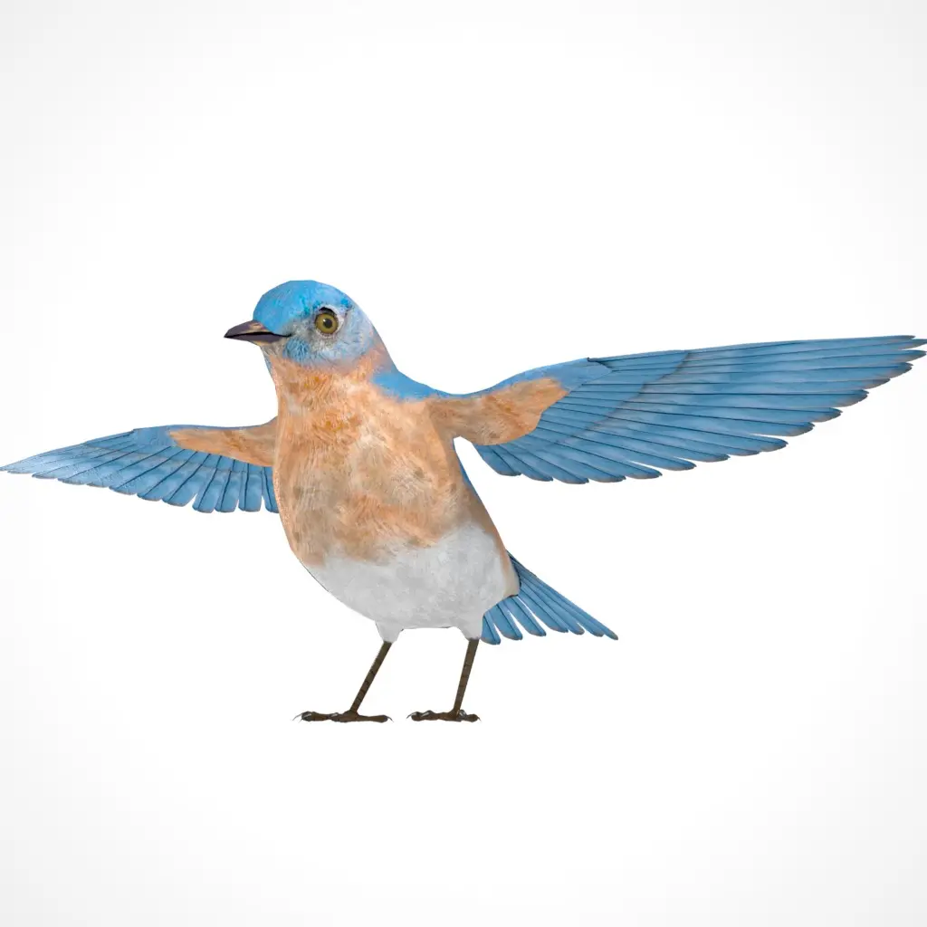 Animated 3D Model of Eastern Bluebird. The model is rigged in Maya and includes various modular animations, perfect for creating custom scenes with ease. You can find both male and female textures included as well as folded and unfolded wing poses. The textures were created with great attention to detail, providing you with accurate and realistic 3D bird models.