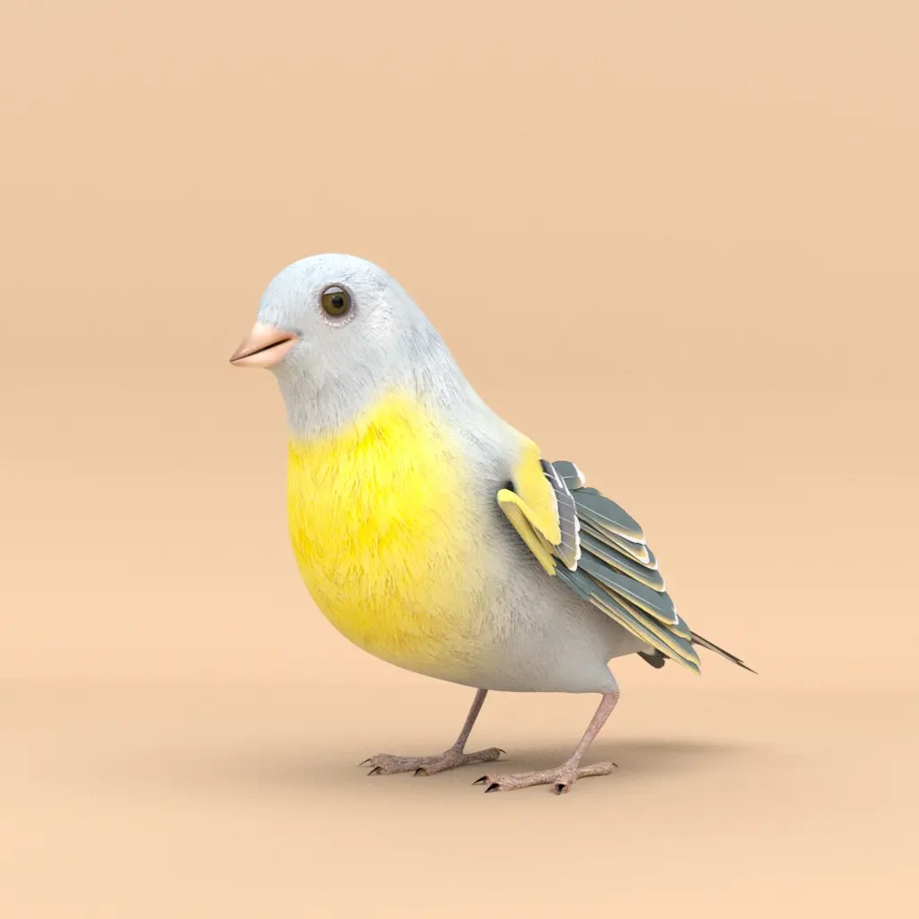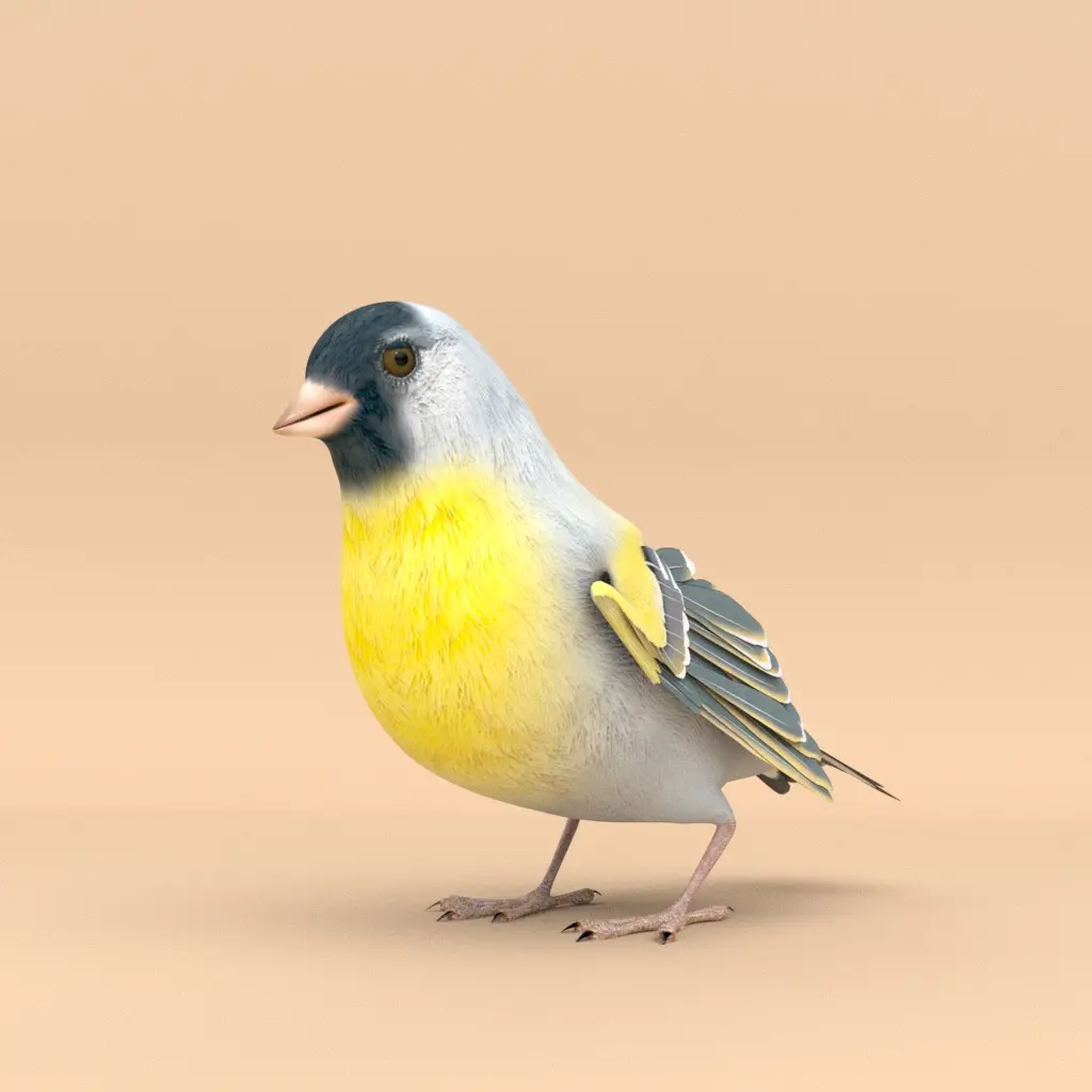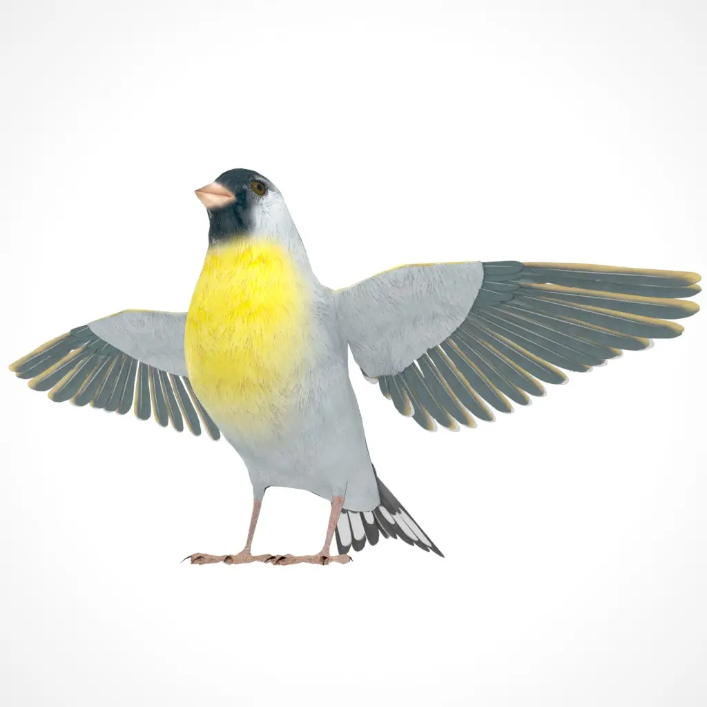 Animated 3D Model of the Lawrence Finch. The model is rigged in Maya and includes various modular animations, perfect for creating custom scenes with ease. You can find both male and female textures included as well as folded and unfolded wing poses. The textures were created with great attention to detail, providing you with accurate and realistic 3D bird models.