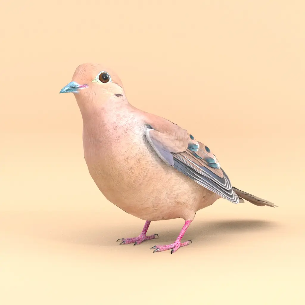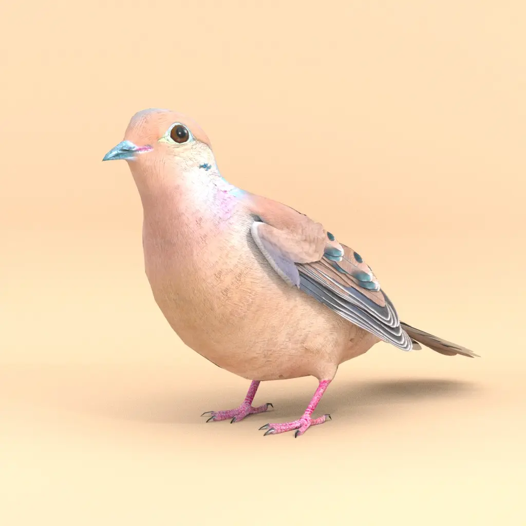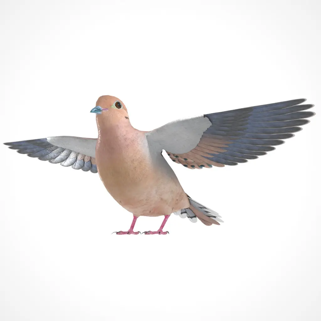 Animated 3D Model of Mourning Dove. The model is rigged in Maya and includes various modular animations, perfect for creating custom scenes with ease. You can find both male and female textures included as well as folded and unfolded wing poses. The textures were created with great attention to detail, providing you with accurate and realistic 3D bird models.