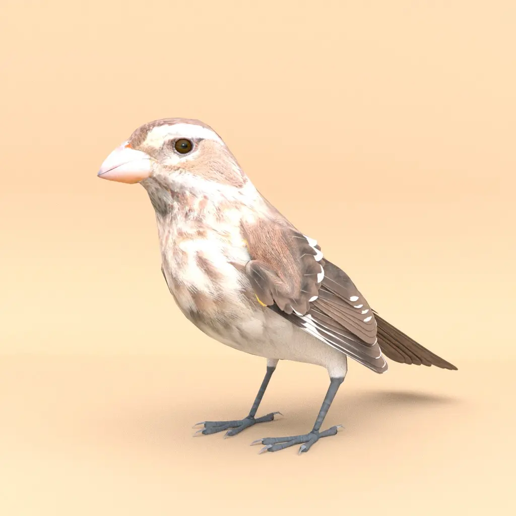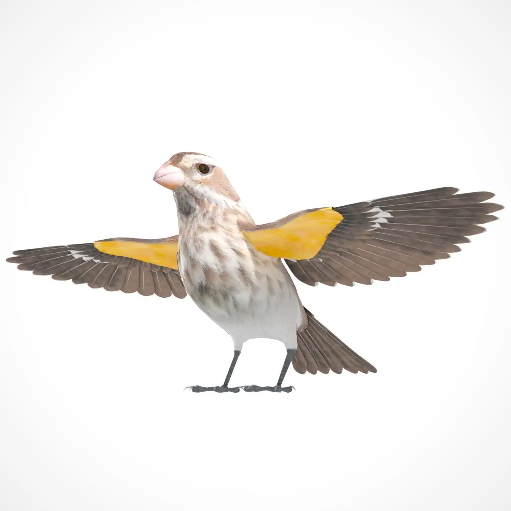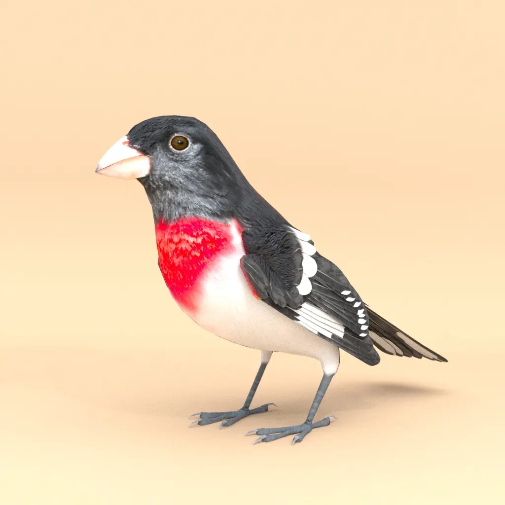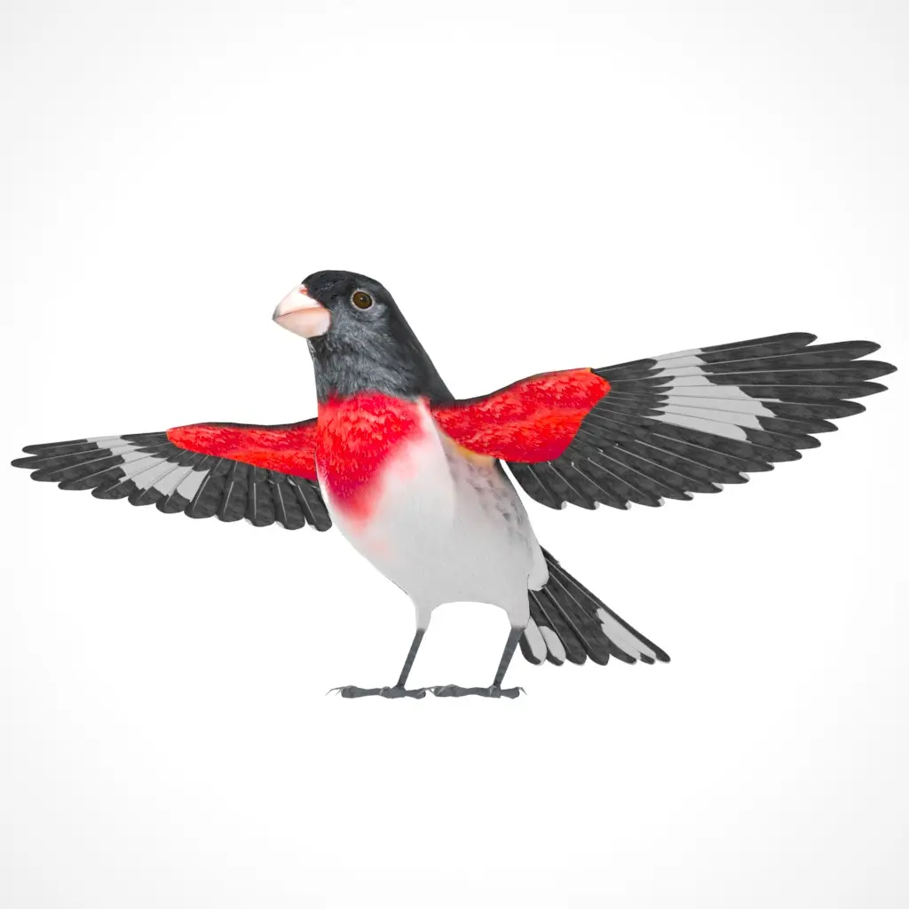 Animated 3D Model of the Rose-Breasted Grosbeak. The model is rigged in Maya and includes various modular animations, perfect for creating custom scenes with ease. You can find both male and female textures included as well as folded and unfolded wing poses. The textures were created with great attention to detail, providing you with accurate and realistic 3D bird models.