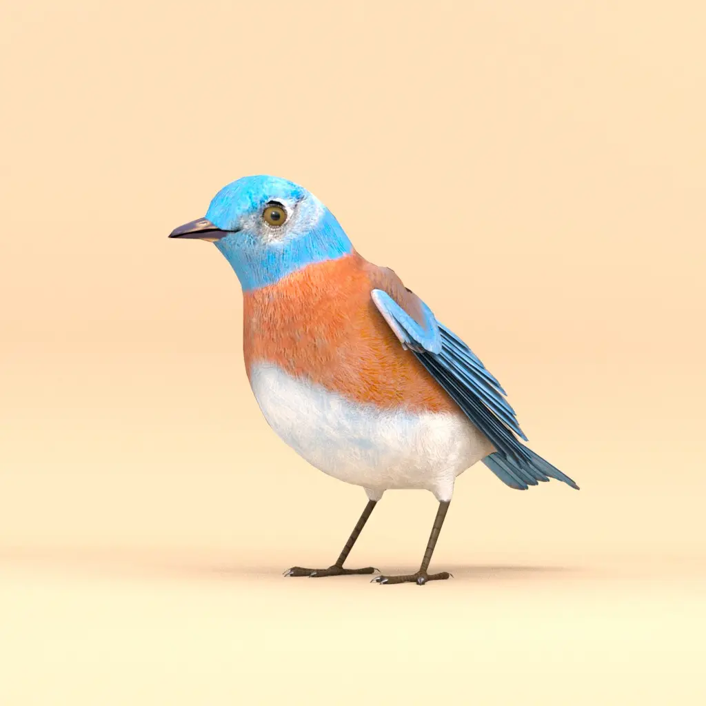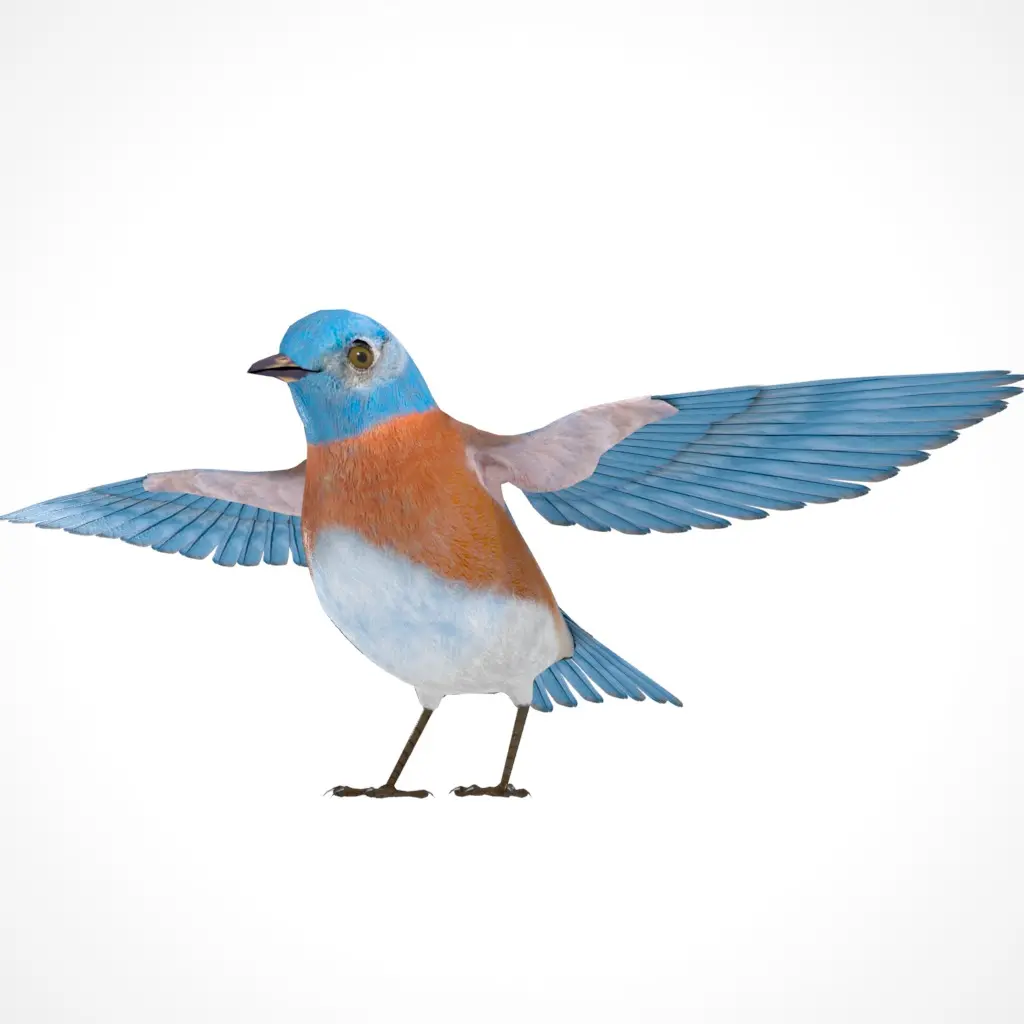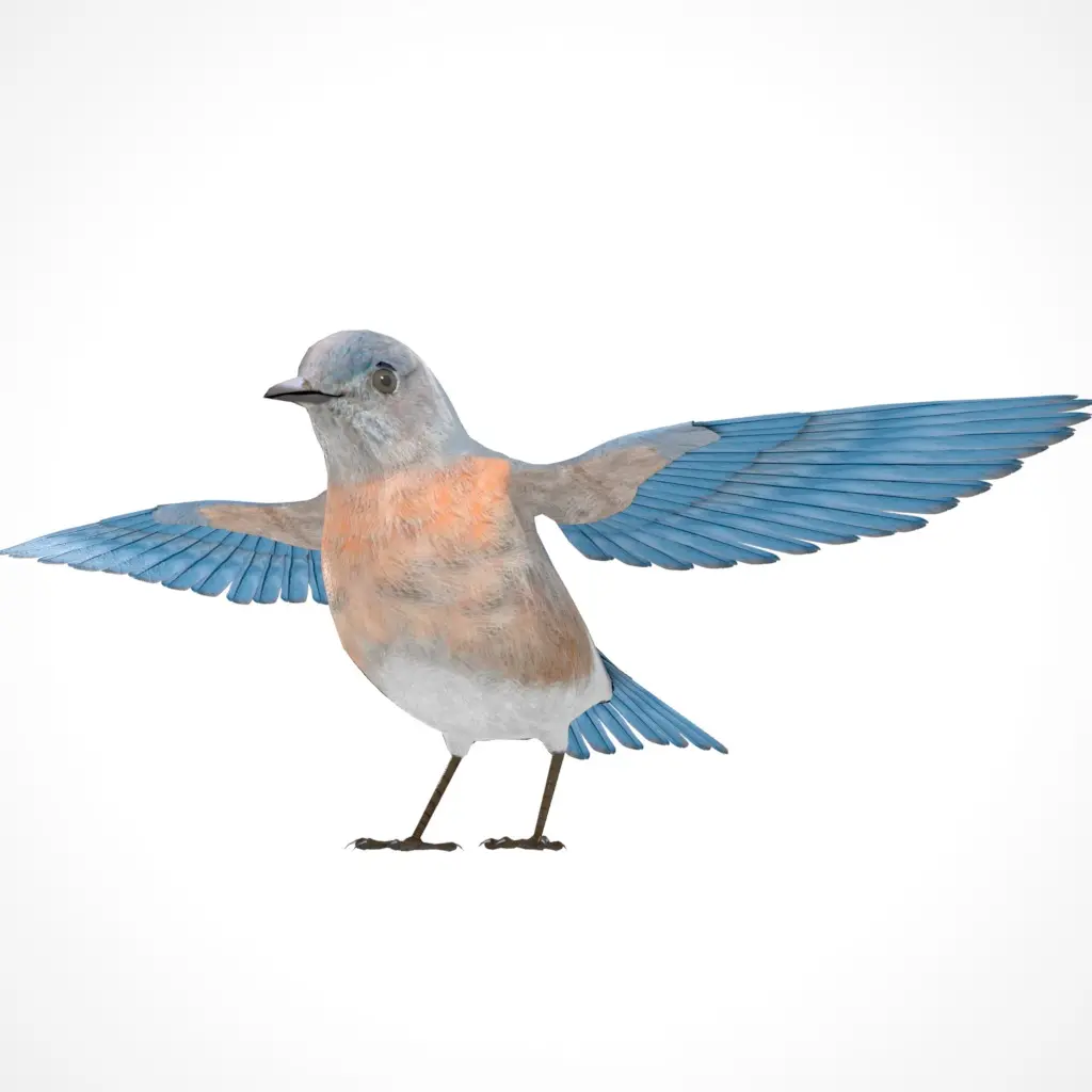 Animated 3D Model of Western Bluebird. The model is rigged in Maya and includes various modular animations, perfect for creating custom scenes with ease. You can find both male and female textures included as well as folded and unfolded wing poses. The textures were created with great attention to detail, providing you with accurate and realistic 3D bird models.