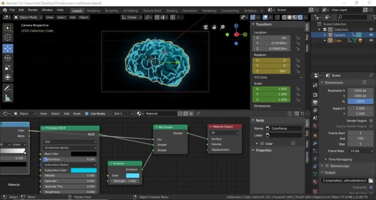3D Brain - sci fi shaderBlender file with ready to render sceneSci fi shader/material/node tree3D object in different formats
